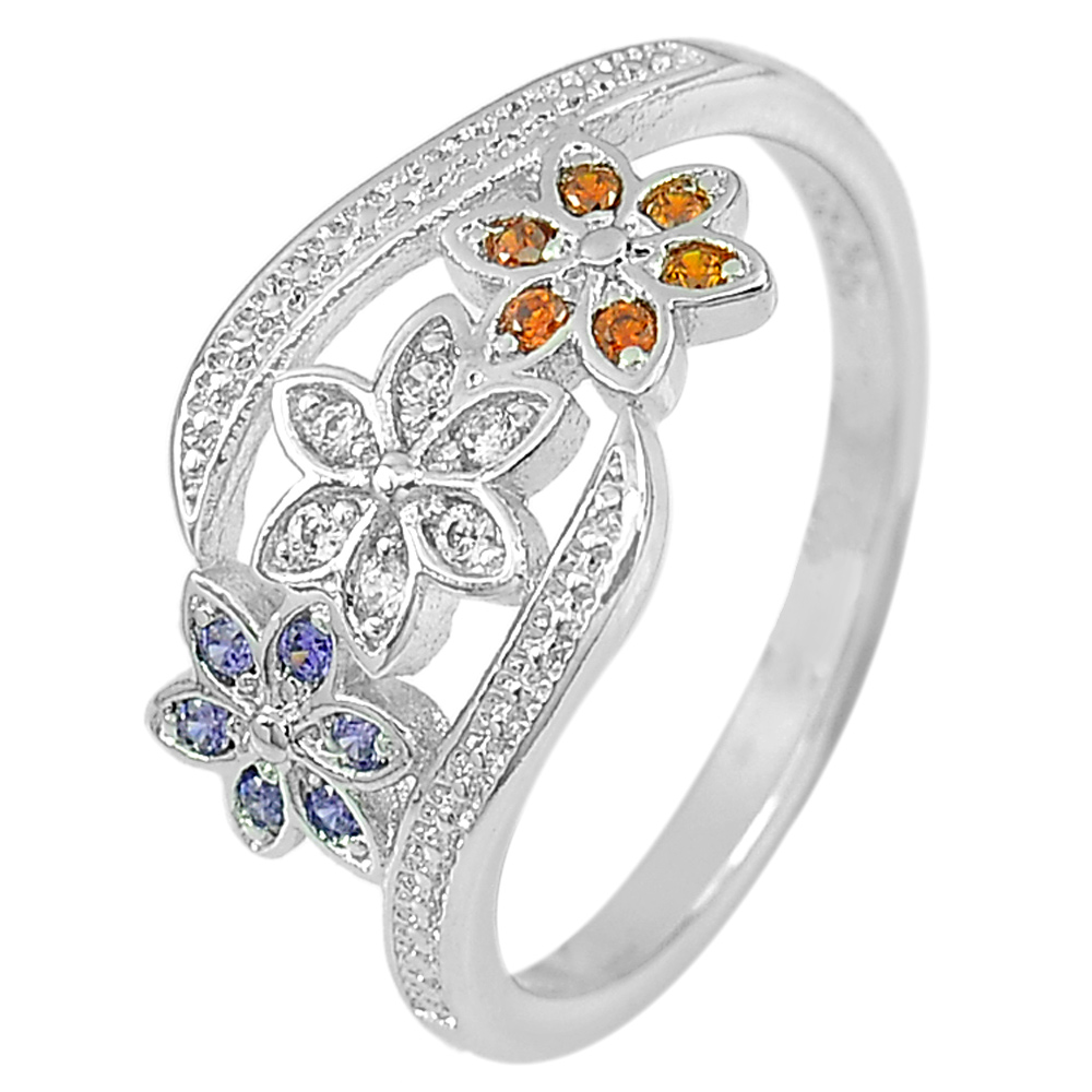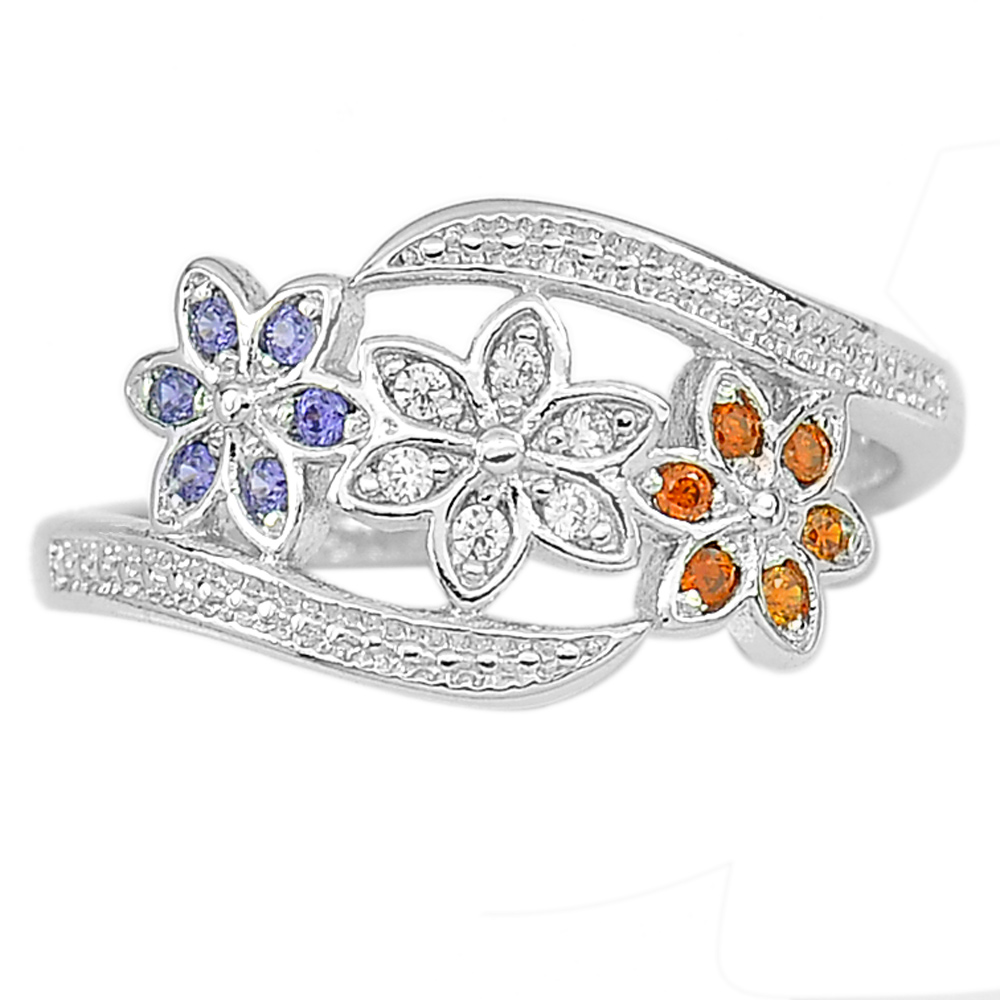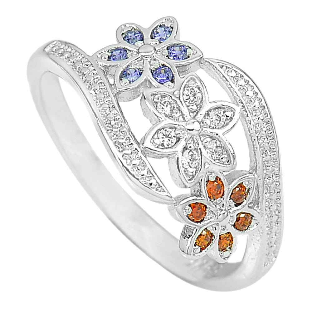 2.11 G. Nice Design Flower Multi-Color CZ Real 925 Sterling Silver Ring Size 7