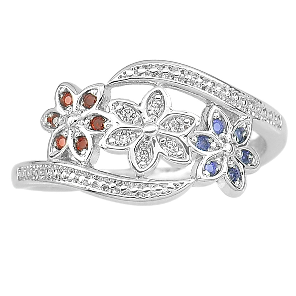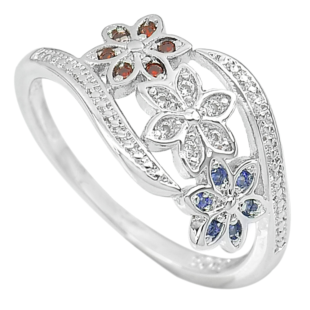 2 G. Good Design Flower Multi-Color CZ Real 925 Sterling Silver Ring Size 7