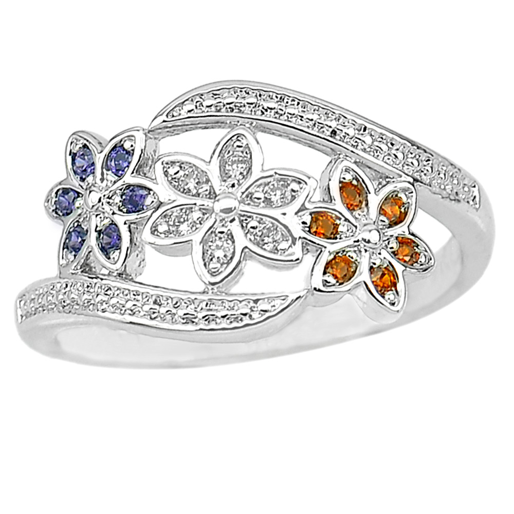 2.35 G. Nice Flower Multi-Color CZ Real 925 Sterling Silver Jewelry Ring Size 7