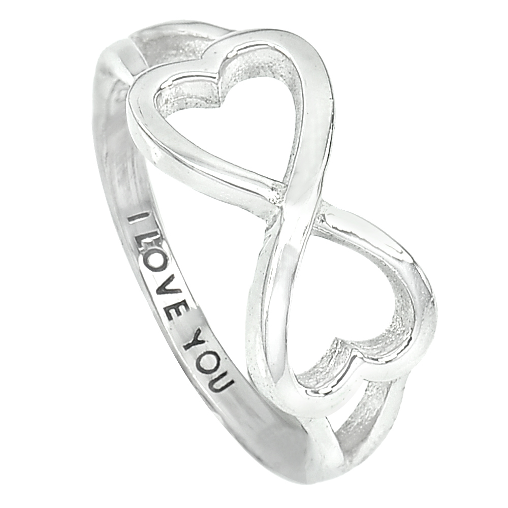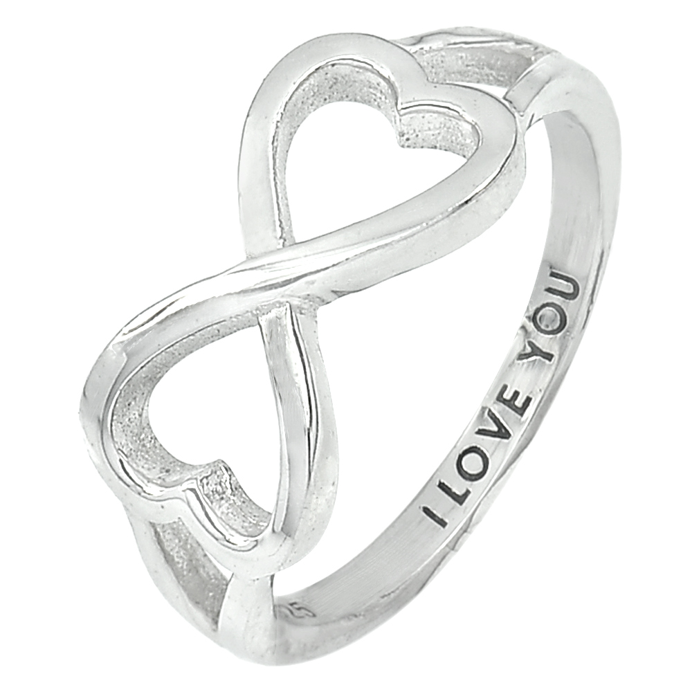 2.06 G. Fine Real 925 Sterling Silver Infinity Ring Size 6 Engraving I love you