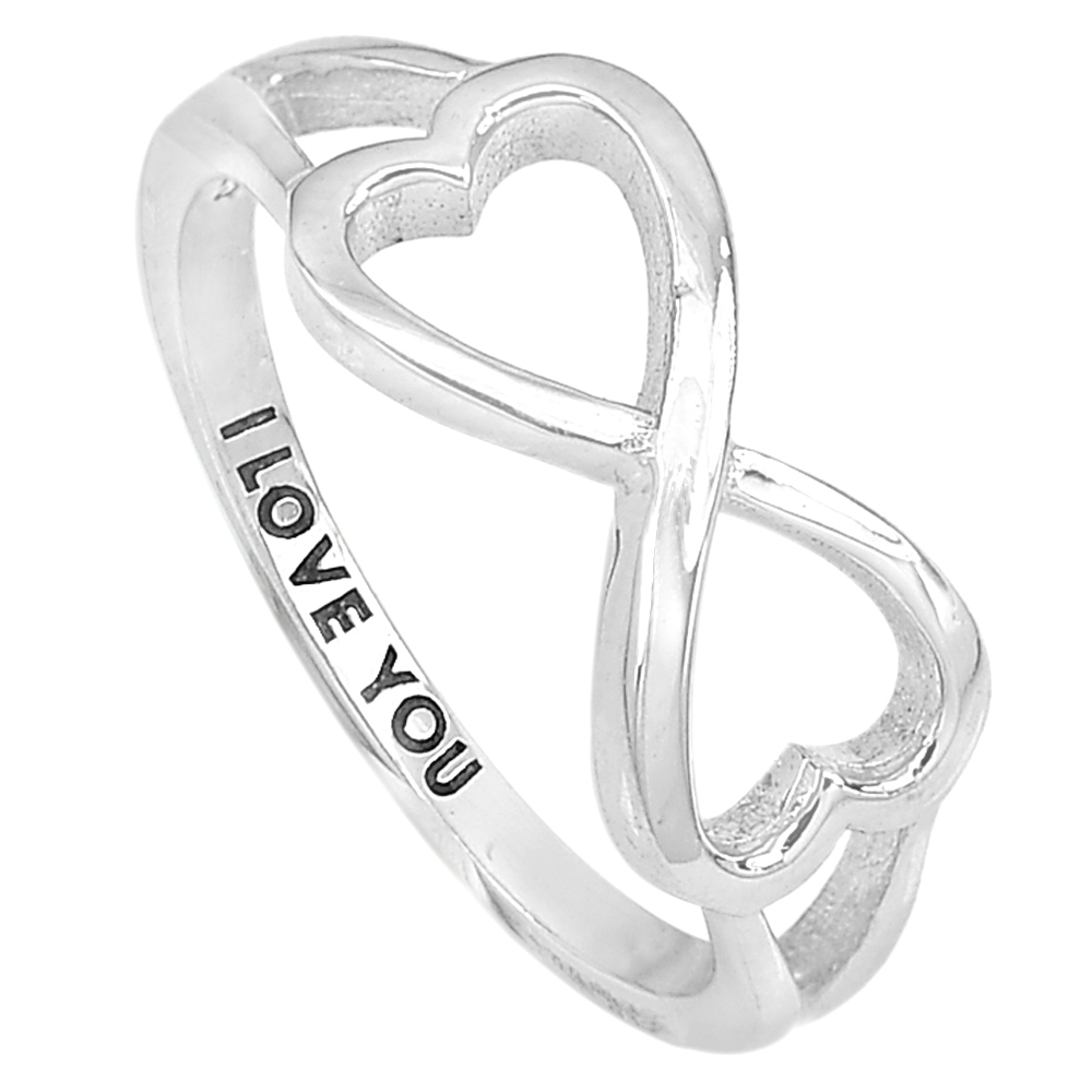 2.12 G. Nice Real 925 Sterling Silver Infinity Ring Size 7 Engraving I love you