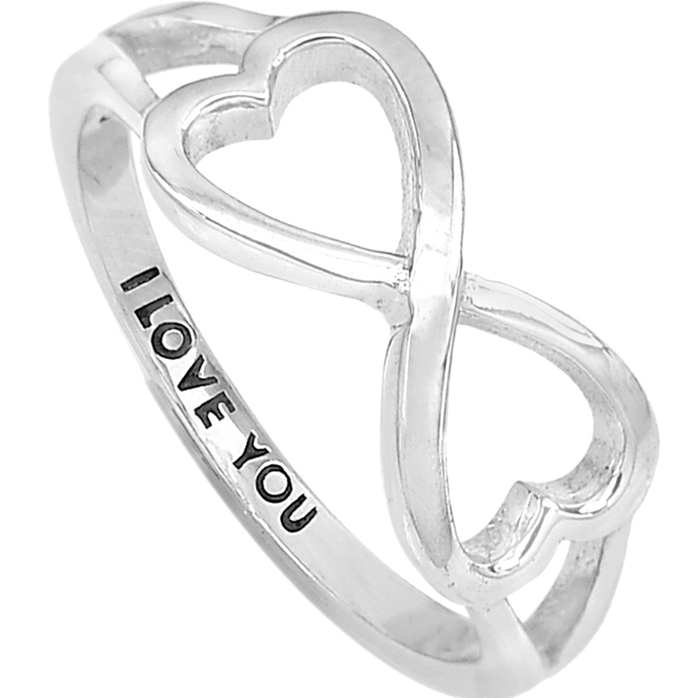 925 Sterling Silver Ring Jewelry Infinity Design Engraving I love you US Size 7