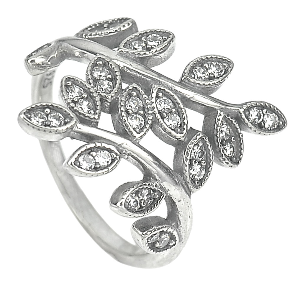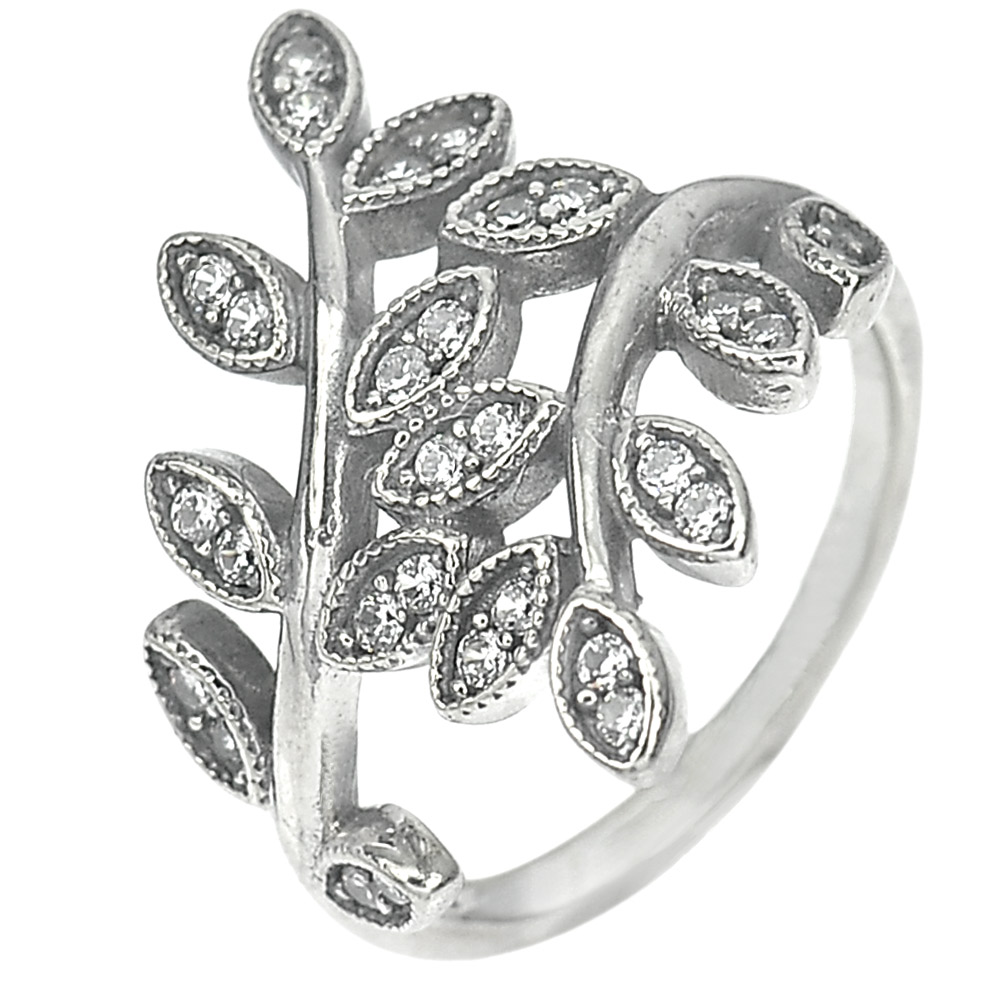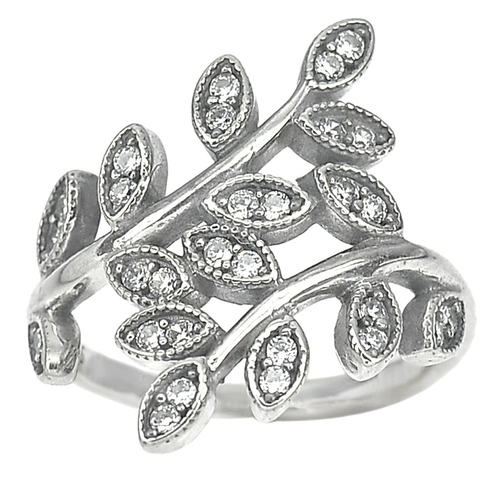 2.88 G. Good White CZ Real 925 Sterling Oxidized Silver Olive Leaf Ring Size 6