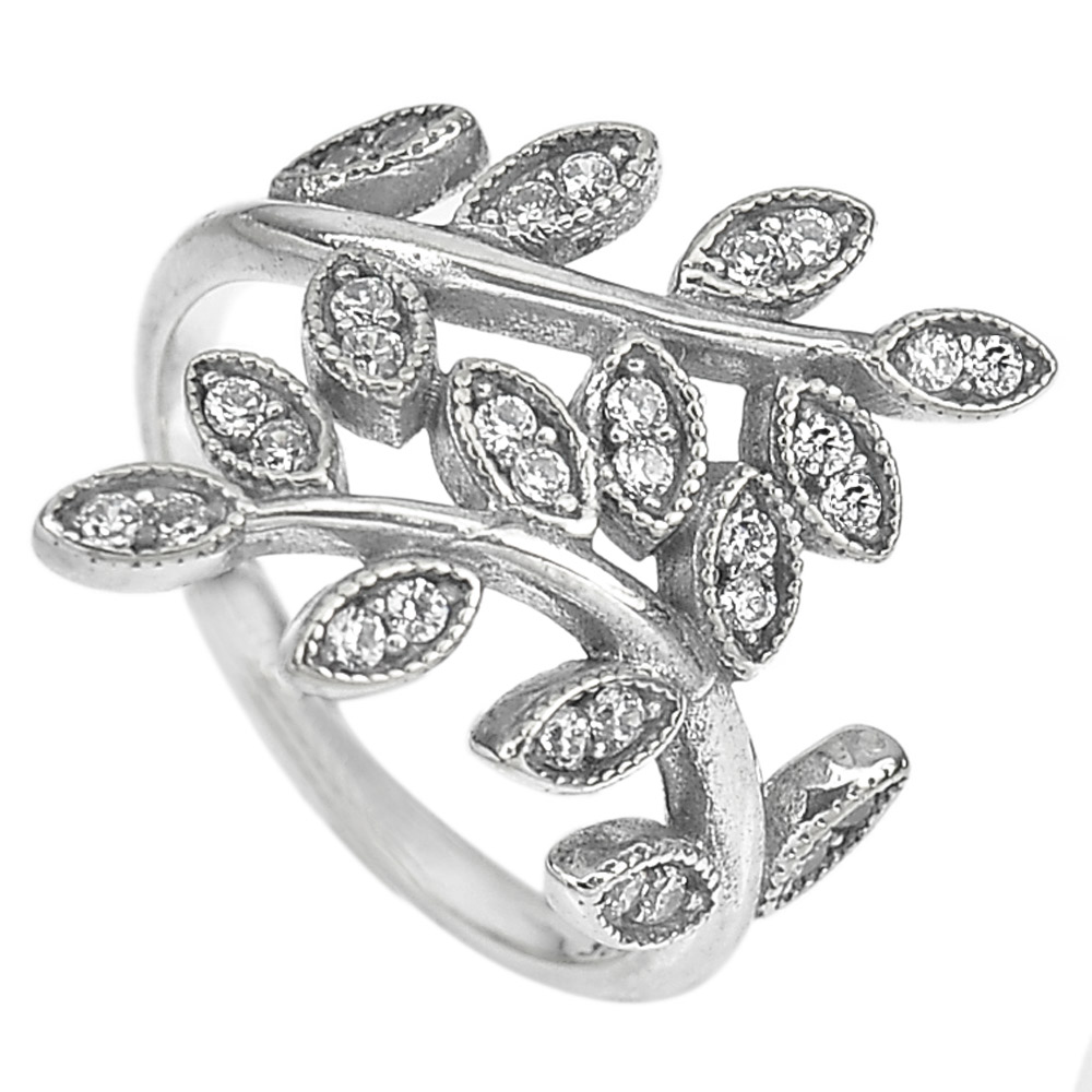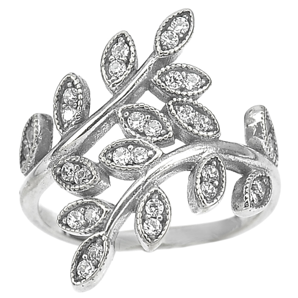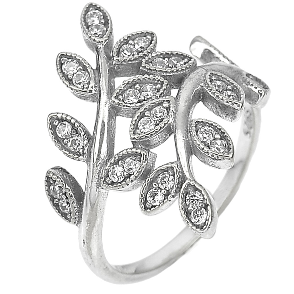 2.72 G. Round White CZ Real 925 Sterling Oxidized Silver Olive Leaf Ring Size 6