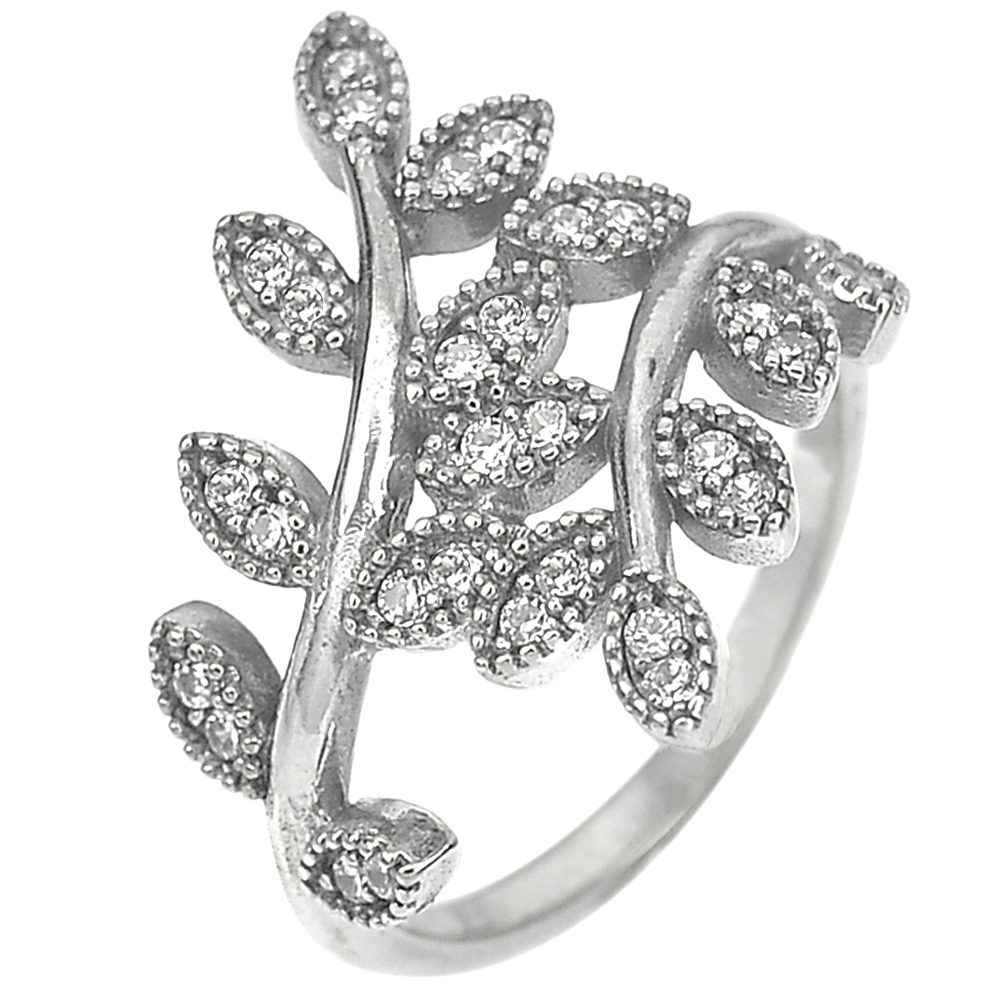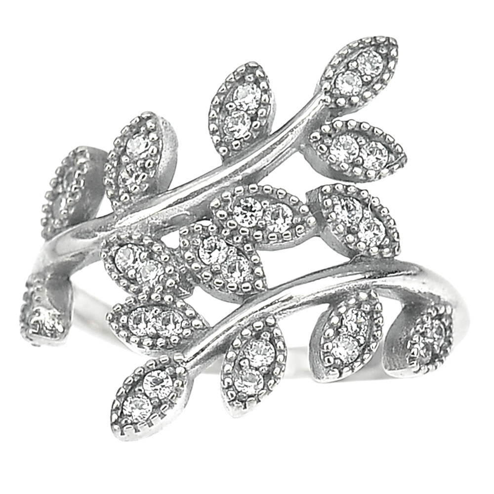3.03 G. Good White CZ Real 925 Sterling Oxidized Silver Olive Leaf Ring Size 7