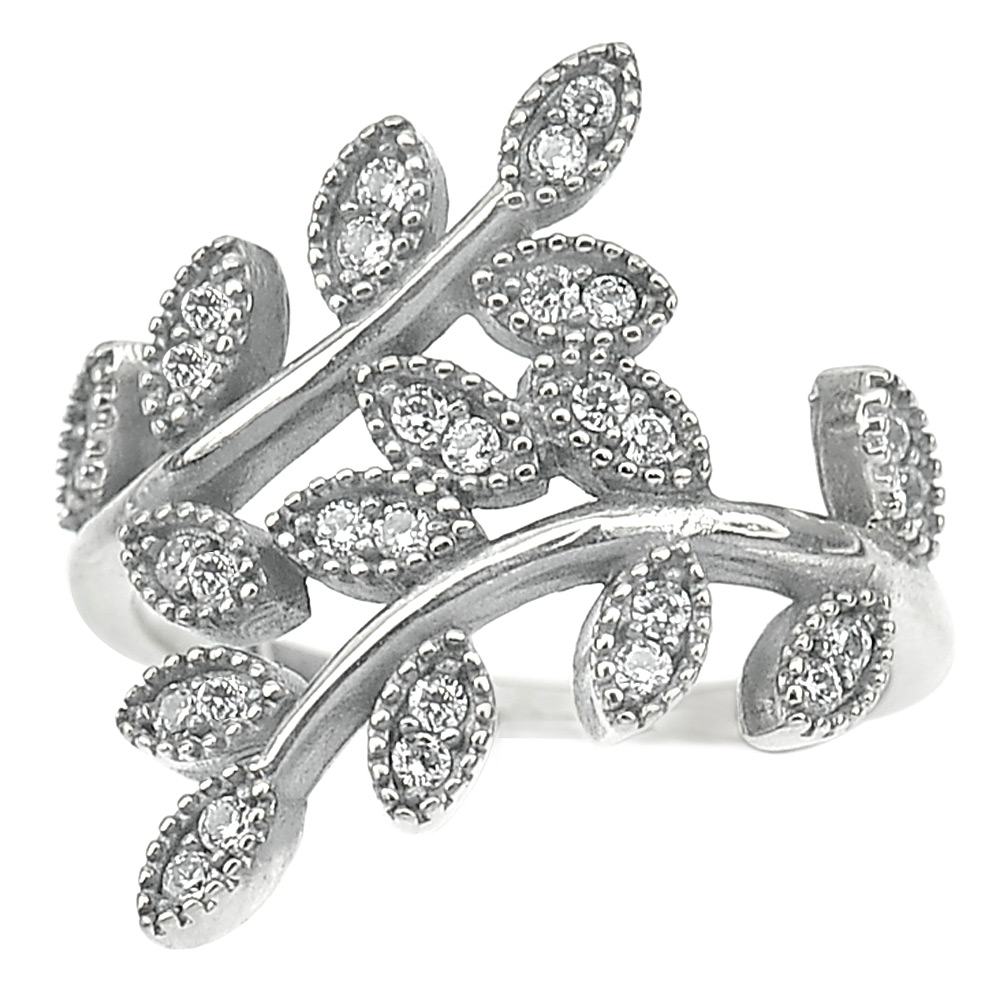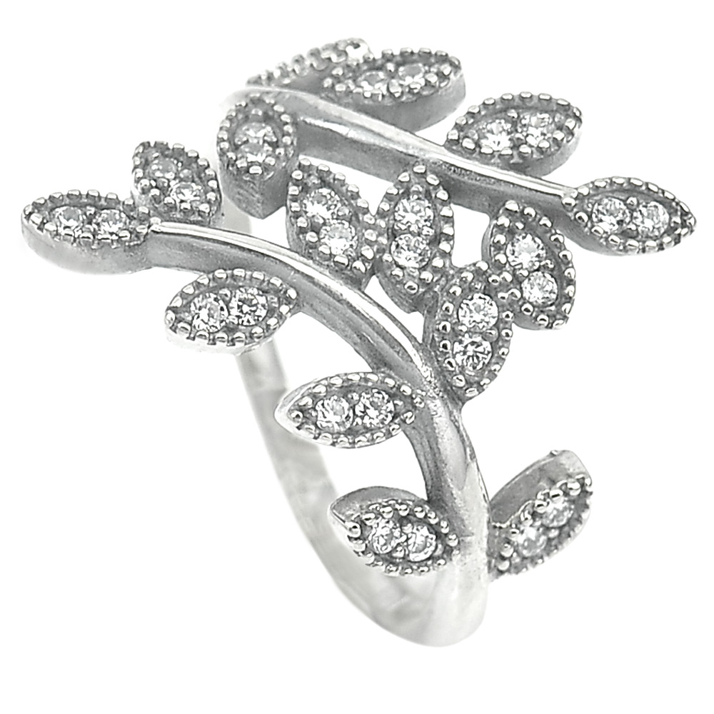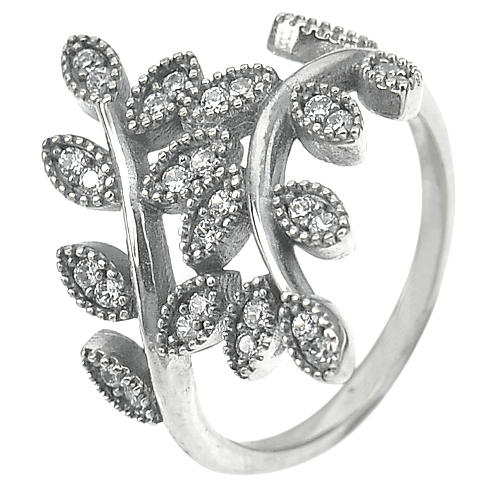 3.05 G. White CZ Real 925 Sterling Oxidized Silver Olive Leaf Ring Size 7