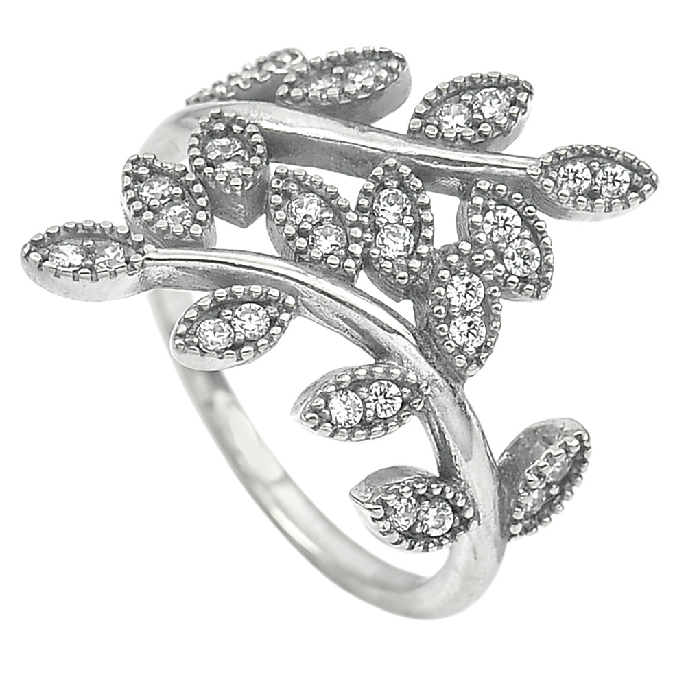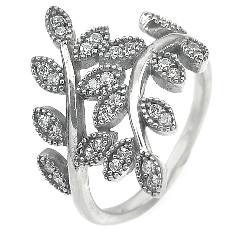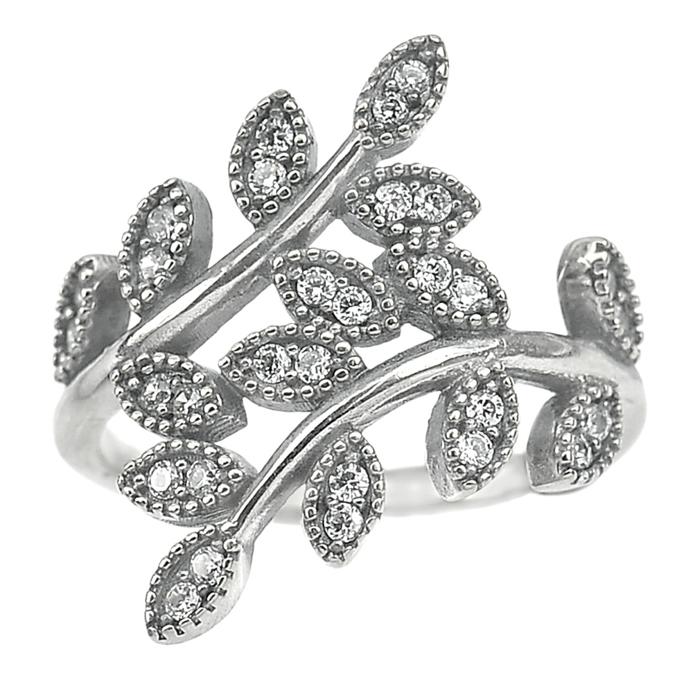 3.05 G. White CZ Real 925 Sterling Oxidized Silver Olive Leaf Ring Size 6.5