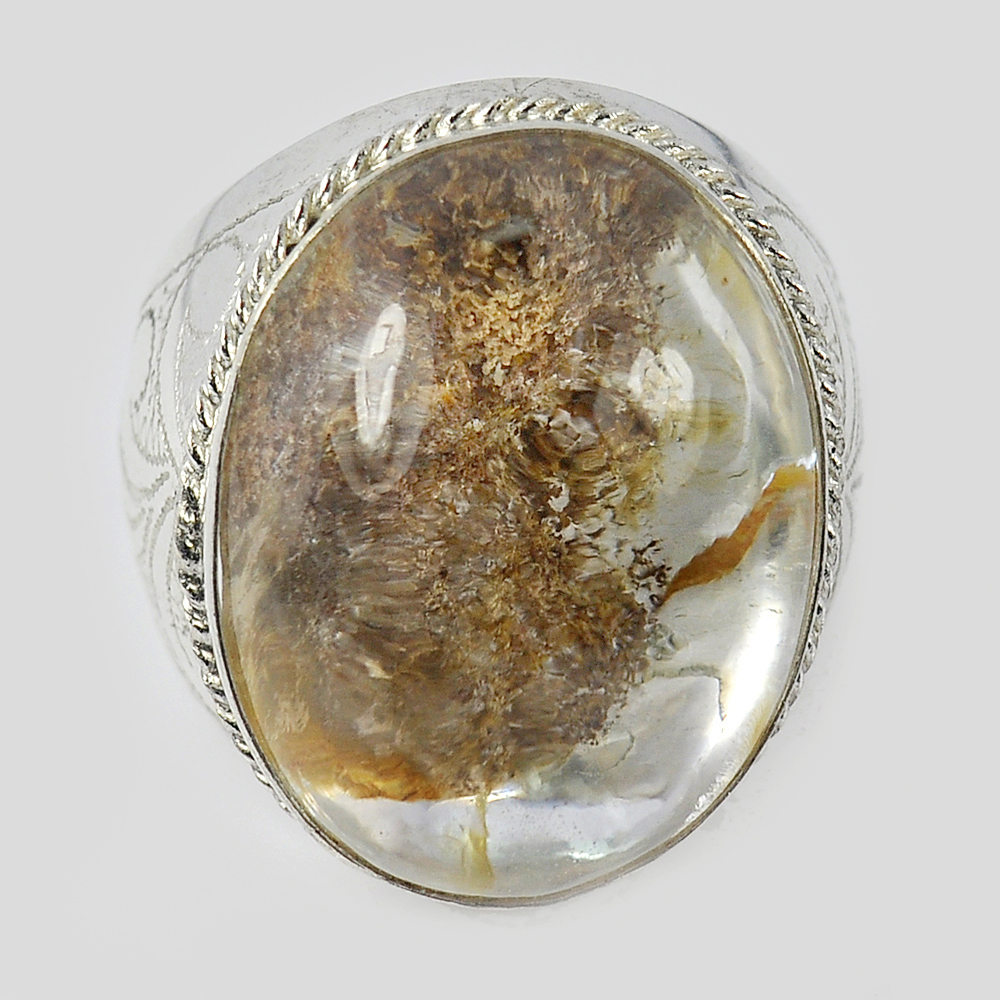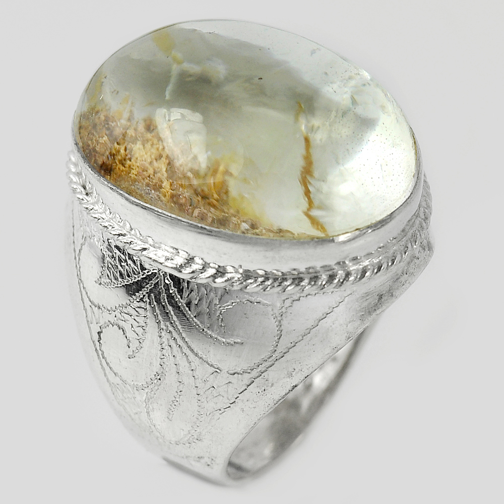 925 Sterling Silver Ring Size 9.5 Natural Gemstone White Moss Quartz 13.39 G.