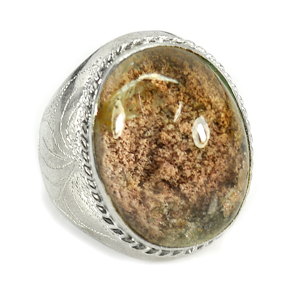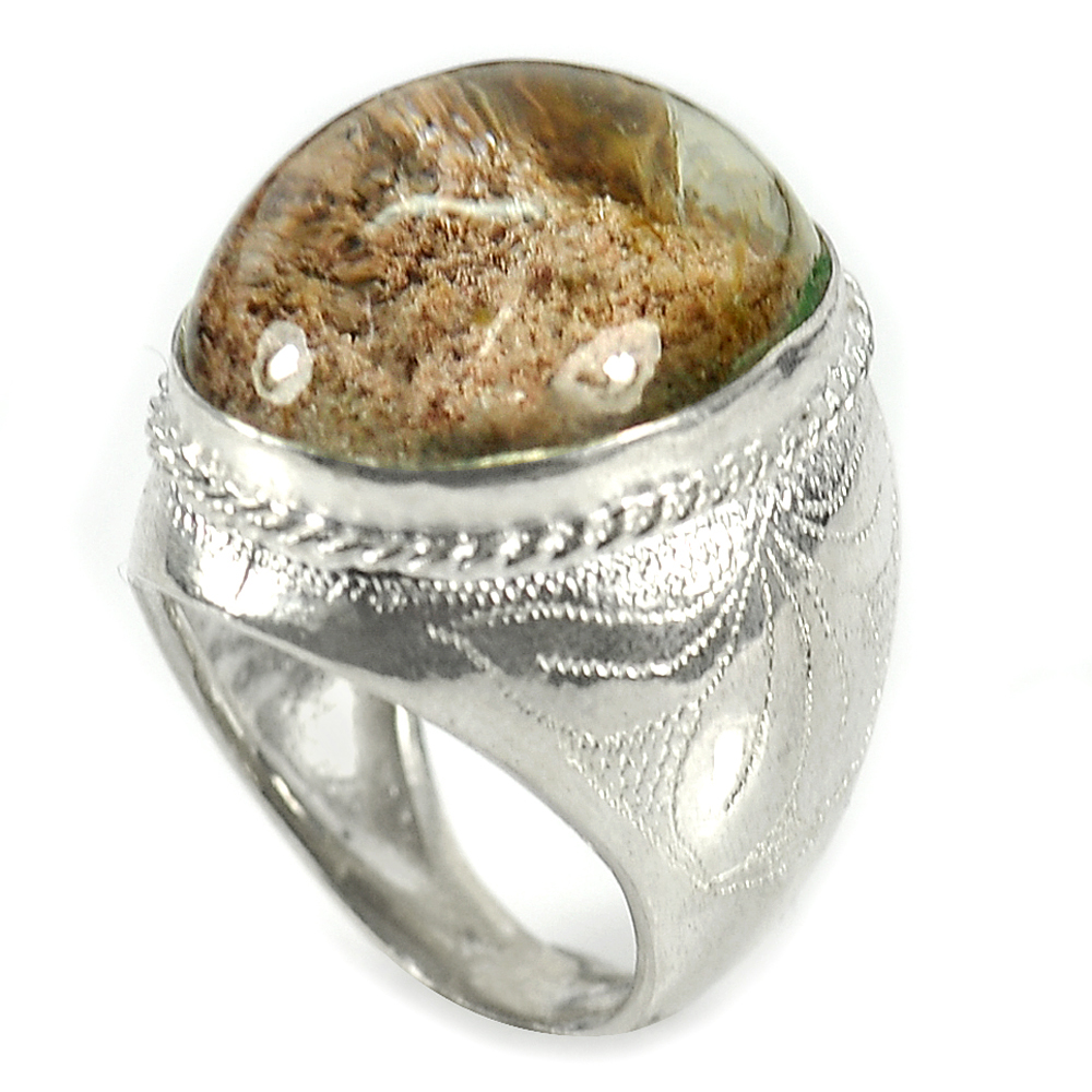 925 Sterling Silver Ring Size 8 Oval Cabochon Natural Gem Moss Quartz 12.96 G.