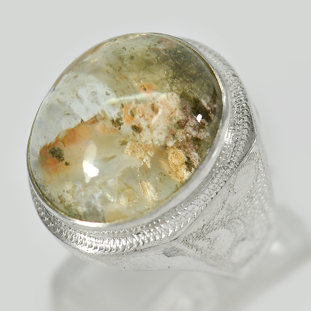 925 Sterling Silver Ring Size 10 Oval Cabochon Natural Gemstone Quartz 10.92 G.