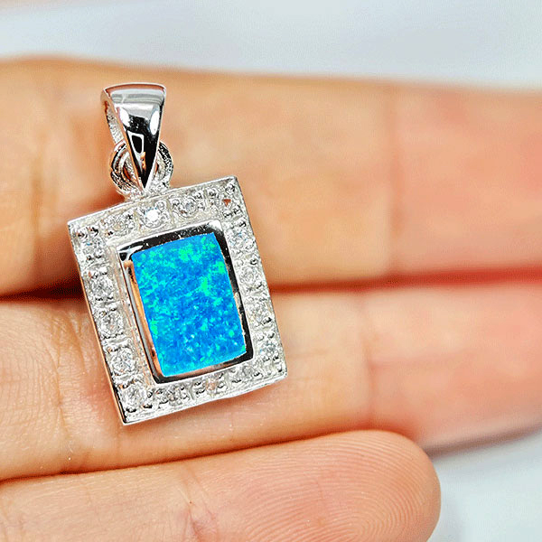 925 Sterling Silver Multi Color Blue Created Opal Pendant Jewelry 4.22 G.
