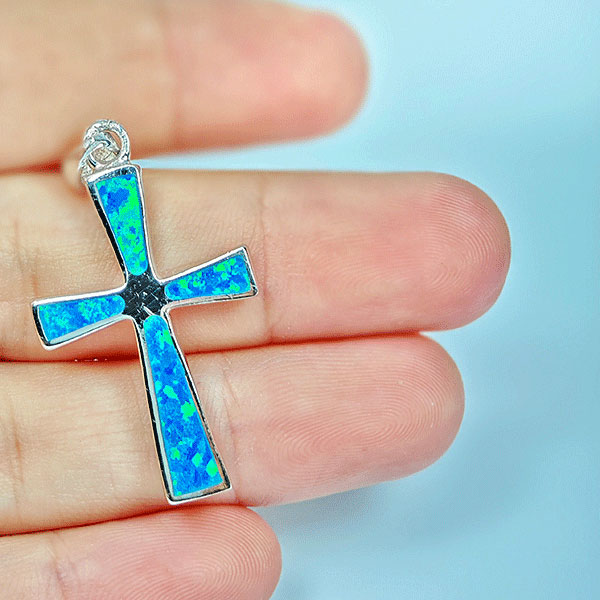 4.69 Grams Real 925 Sterling Silver Multi Color Blue Created Opal Pendant