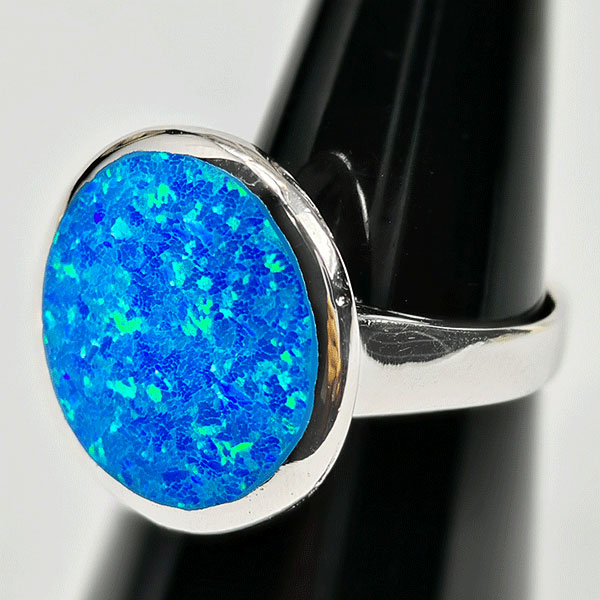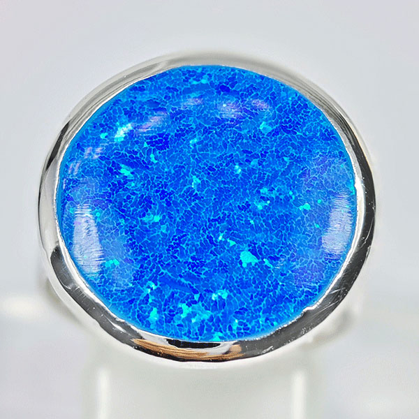 925 Sterling Silver Multi Color Blue Created Opal Jewelry 6.52 G. Ring Size 7