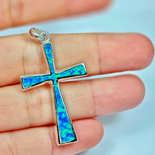5.66 Grams Real 925 Sterling Silver Multi Color Blue Created Opal Pendant
