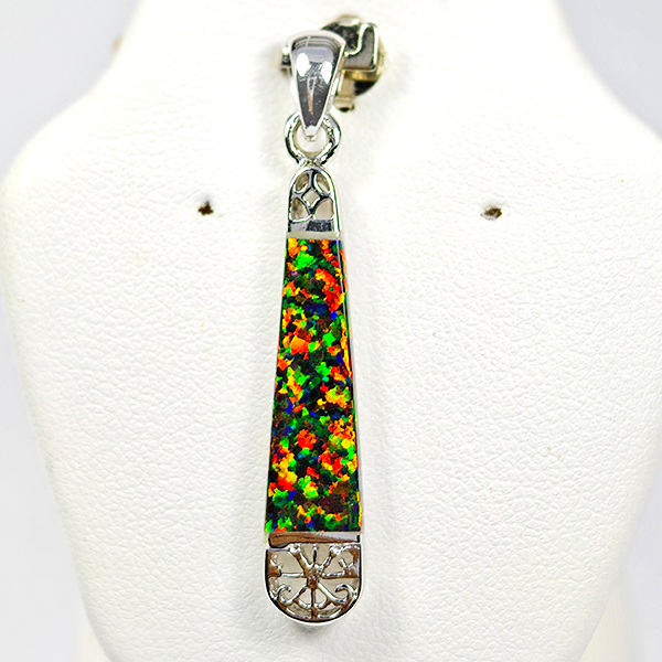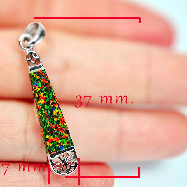 2.98 Grams Real 925 Sterling Silver Multi Color Orange Created Opal Pendant