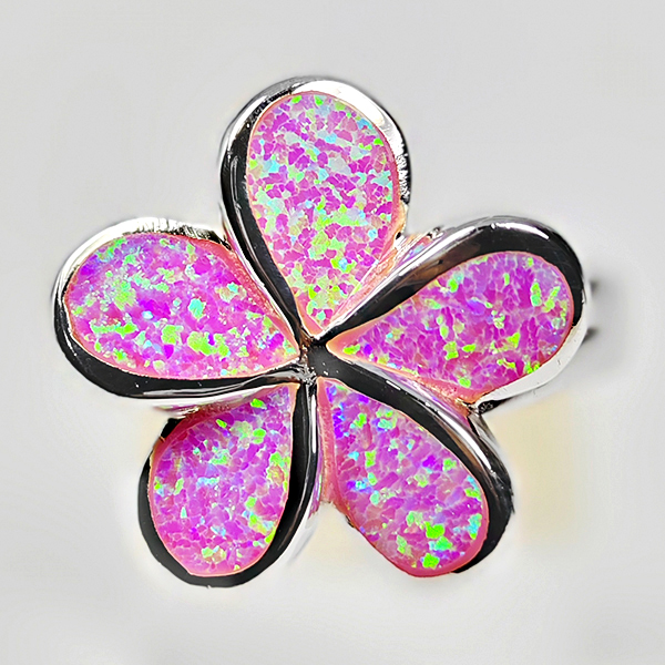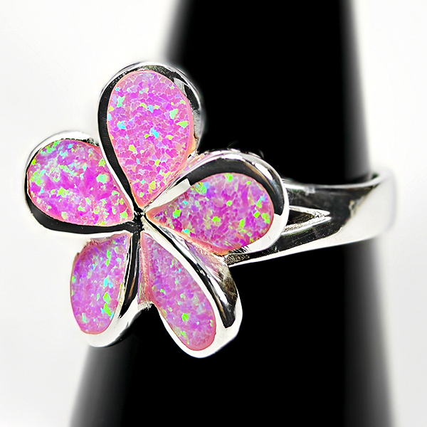 7.53 Grams Good Pink Created Opal Inlay Real 925 Sterling Silver Ring Size 9
