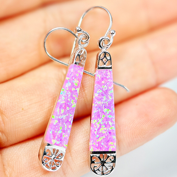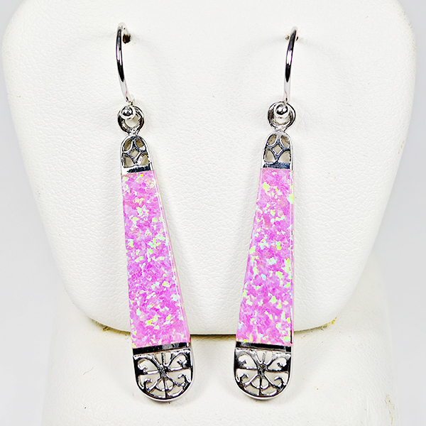 3.85 Grams Real 925 Sterling Silver Multi Color Pink Created Opal Loop Earrings