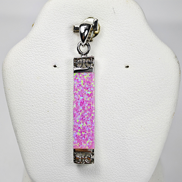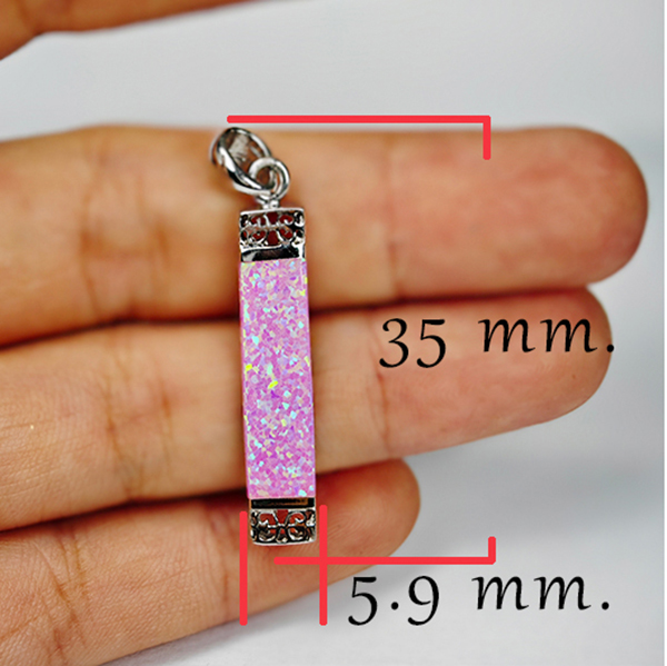 2.87 G. Real 925 Sterling Silver Multi Color Pink Created Opal Baguette Pendant