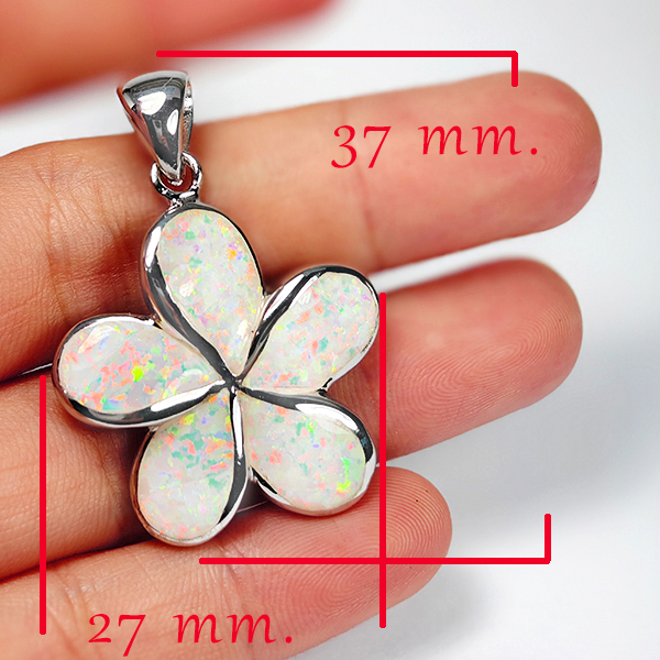 9.90 Grams Real 925 Sterling Silver Multi Color White Created Opal Pendant