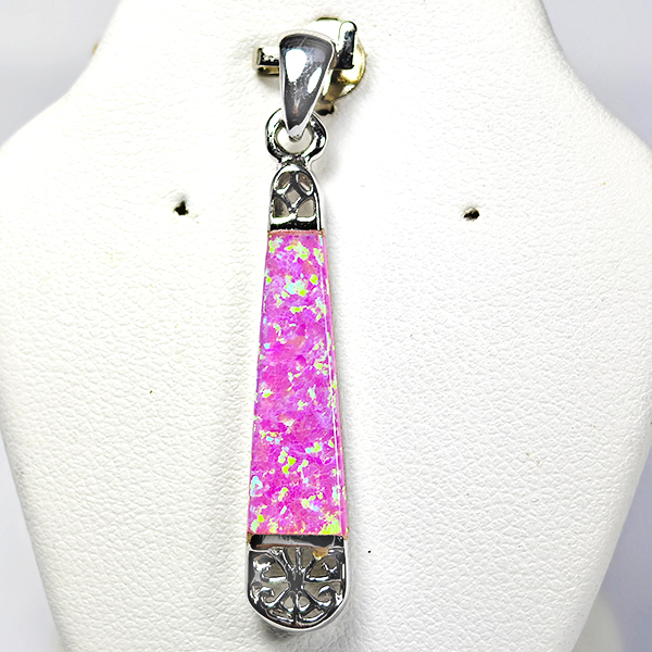 2.87 Grams Real 925 Sterling Silver Multi Color Pink Created Opal Pendant