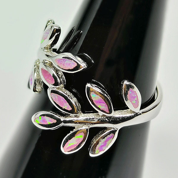 925 Sterling Silver Multi Color Pink Created Opal Jewelry 3.29 G. Ring Size 7