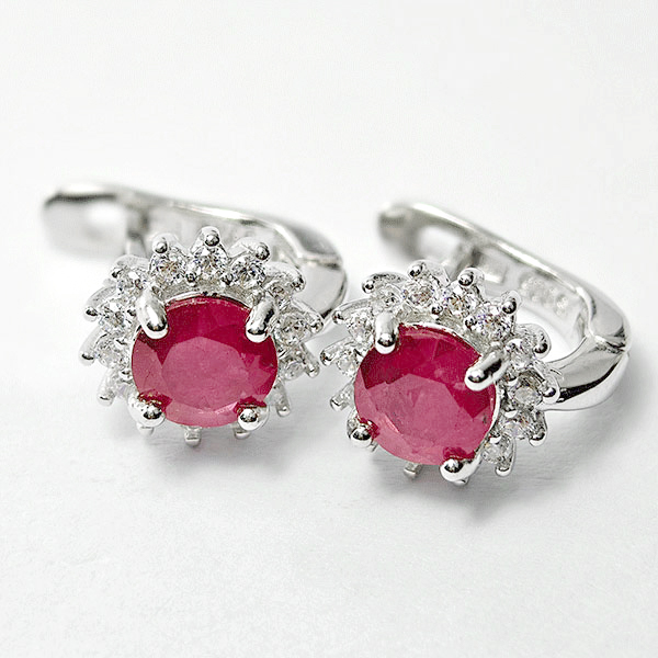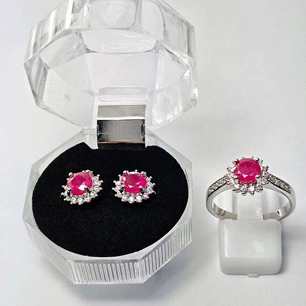 Natural Gems Pink Ruby 925 Sterling Silver Jewelry Sets Ring Size 8 And Earrings