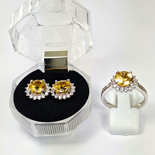 Natural Gems Citrine 925 Sterling Silver Jewelry Sets Ring Size 9 And Earrings