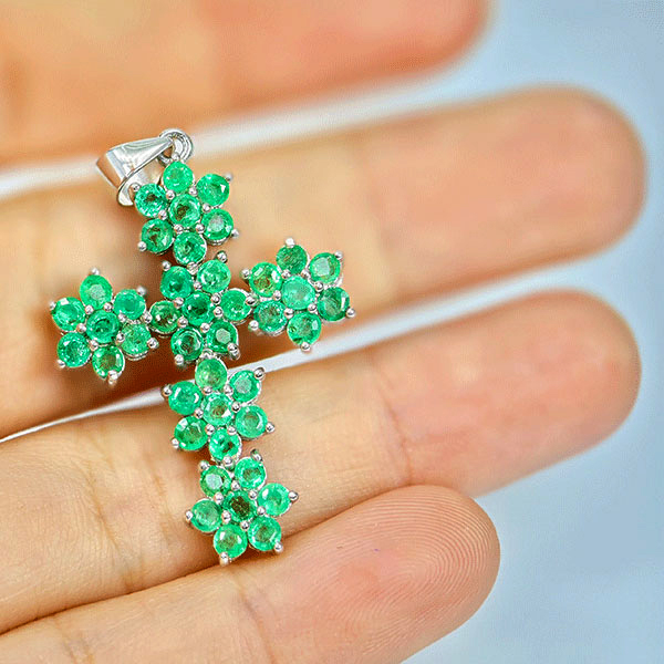 Natural Gems Green Emerald 925 Sterling Silver Jewelry Pendant 3.62 G.