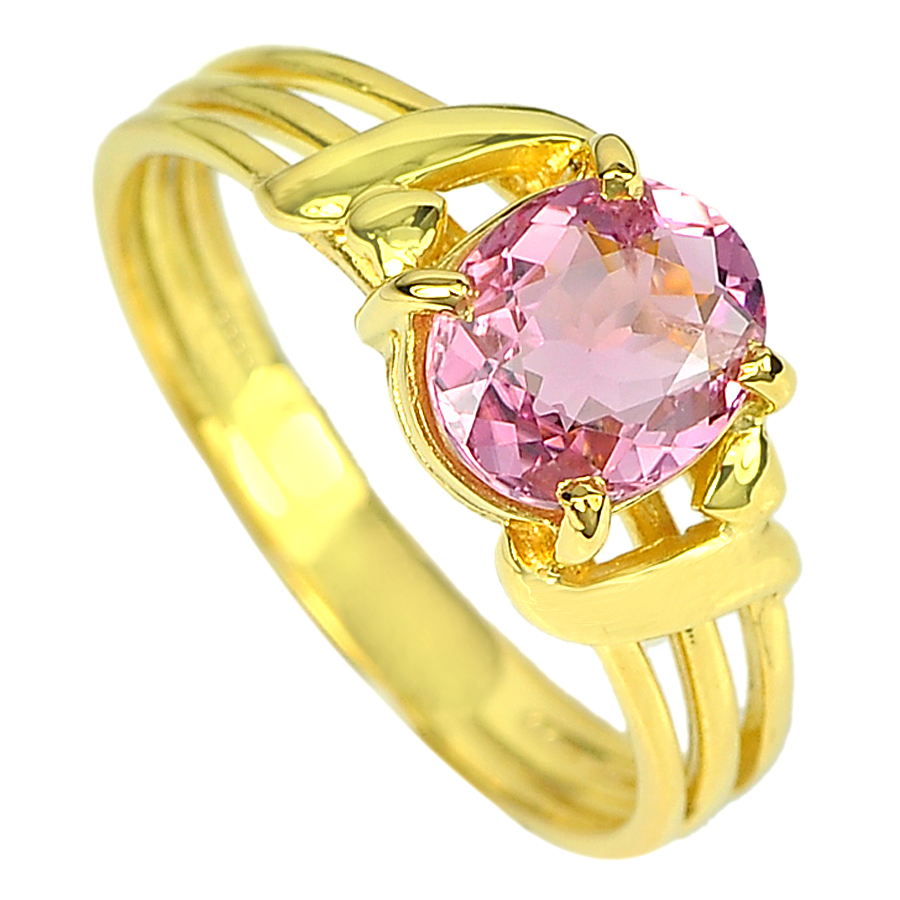 1.46 Ct. Natural Clean Pink Tourmaline 14k Solid Gold Ring Size 7