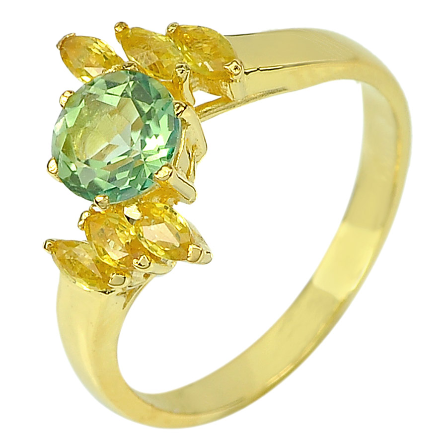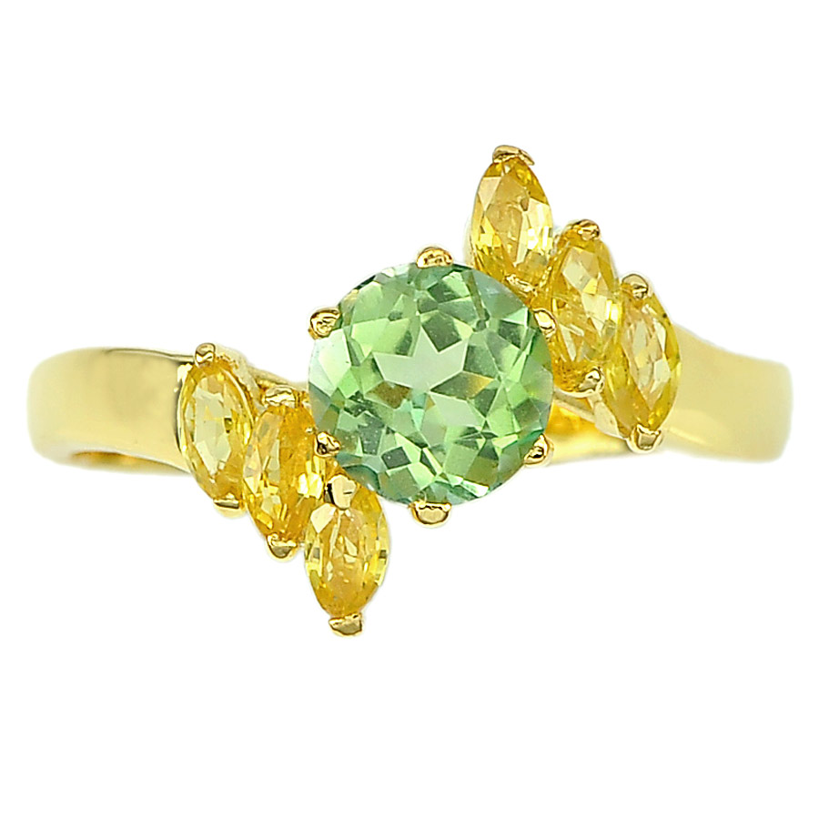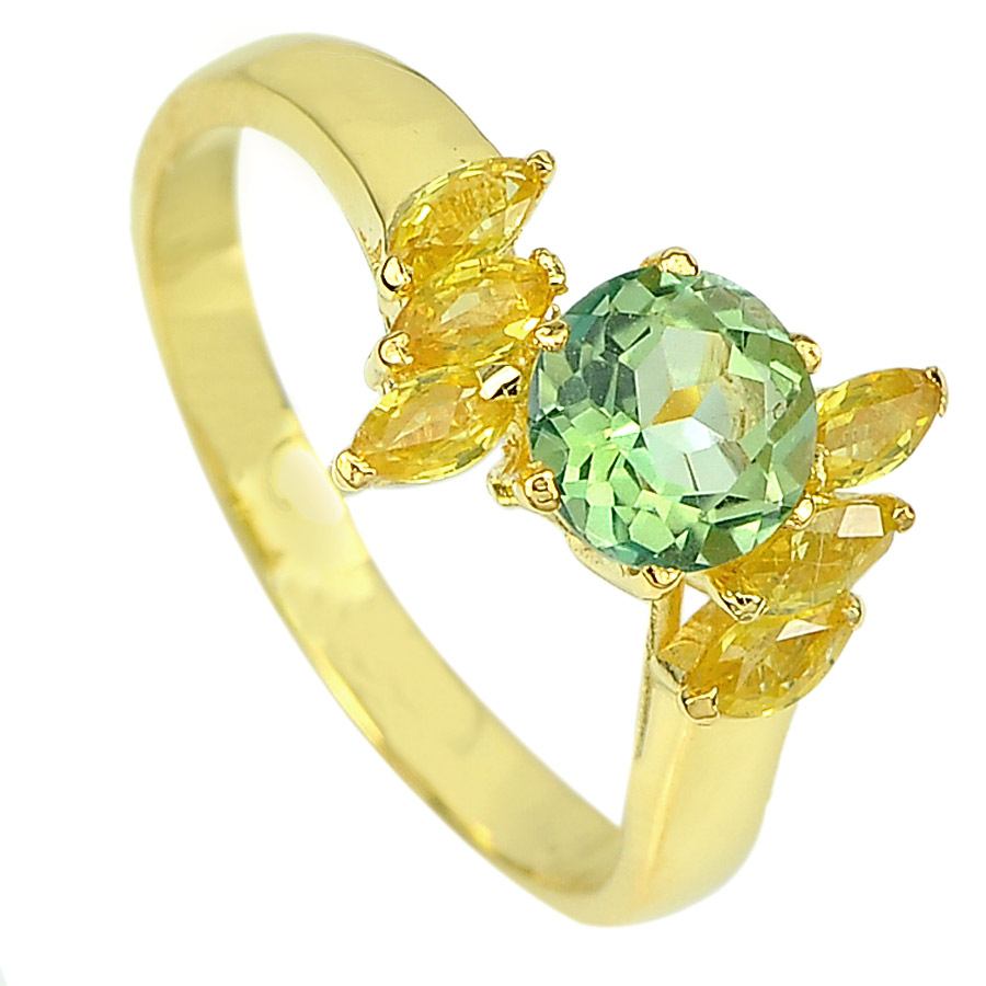 1.11 Ct. Natural Emerald Envy Topaz & Sapphire 14K Solid Gold Ring