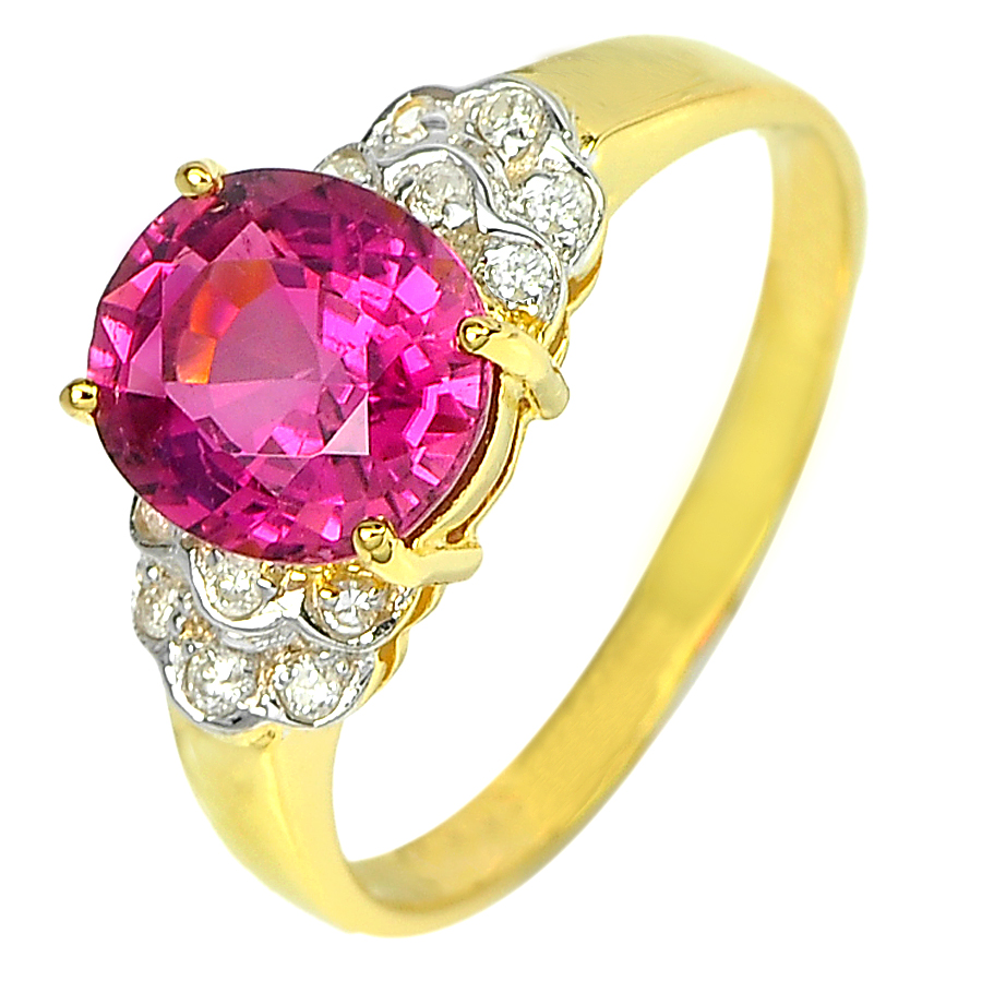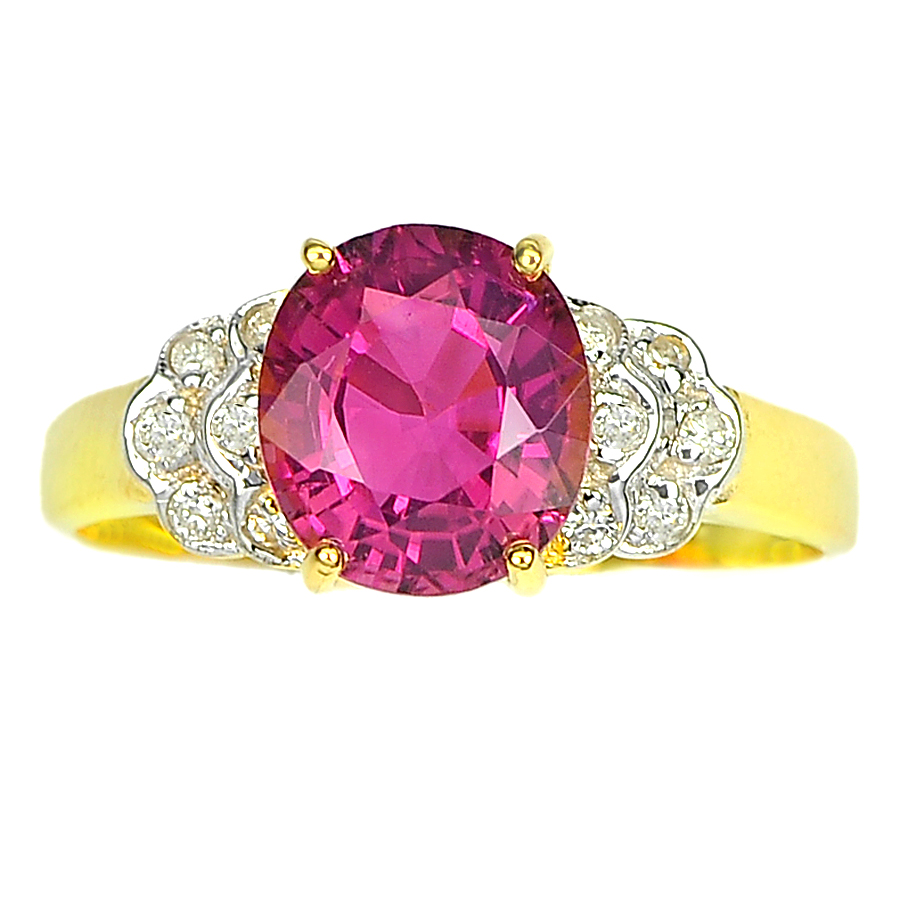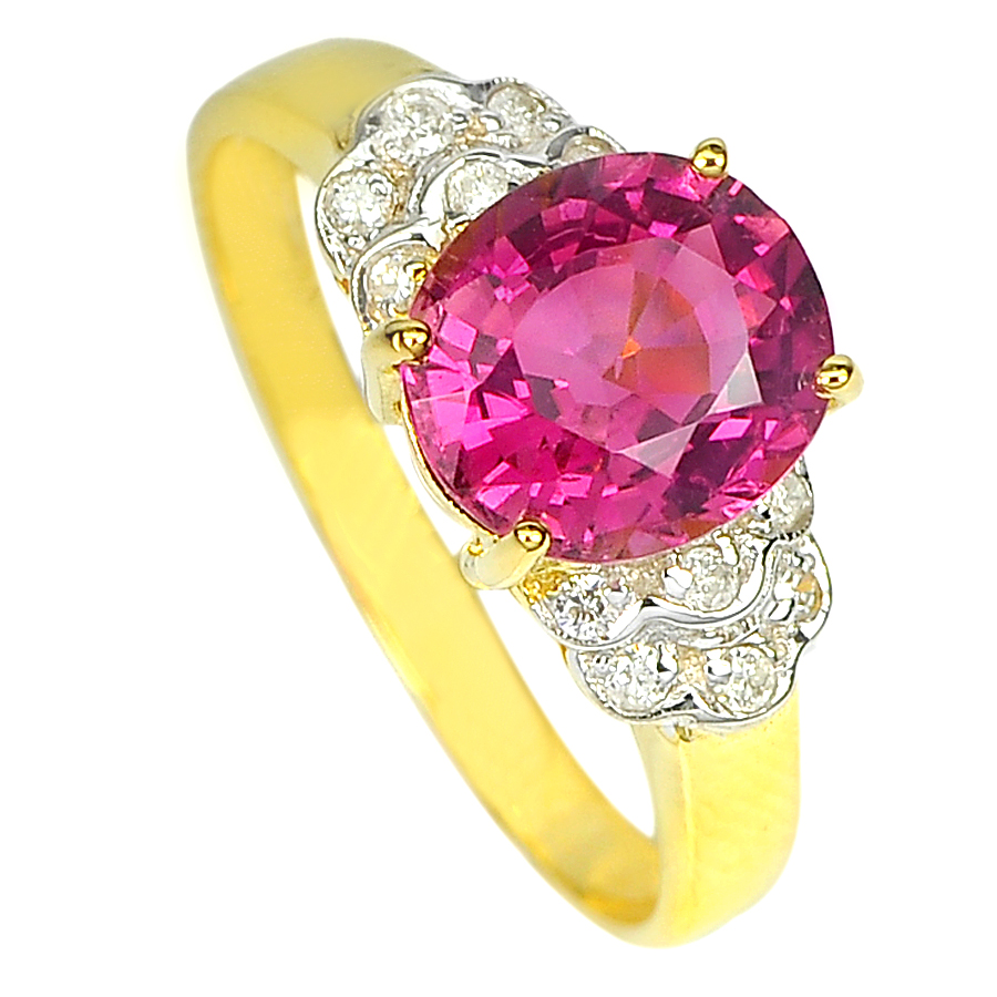 1.75 Ct. Natural Gemstone Tourmaline and Diamond 14K Solid Gold Ring Size 6.5