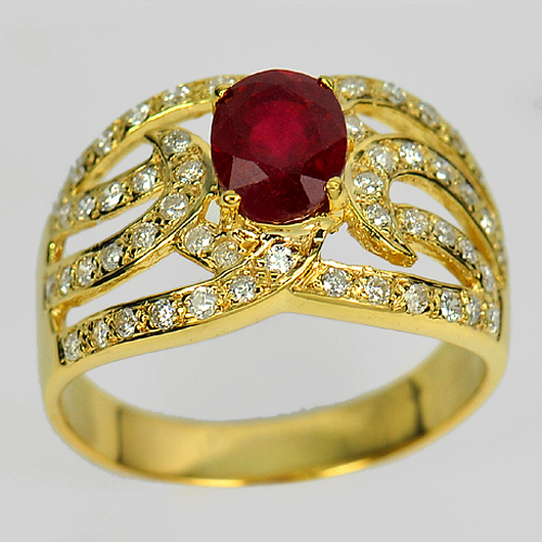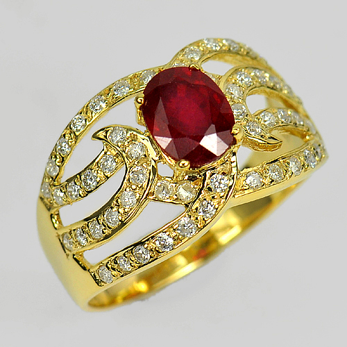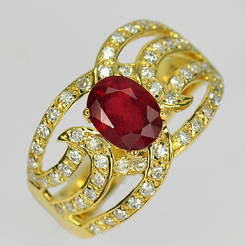 1.90 ct. Natural Gem Red Ruby with White Diamond 14K Solid Gold Ring Size 6.5