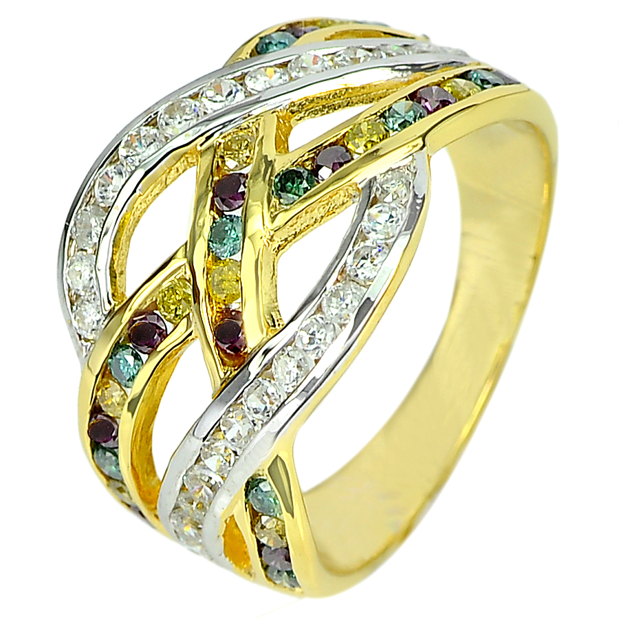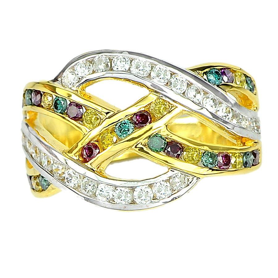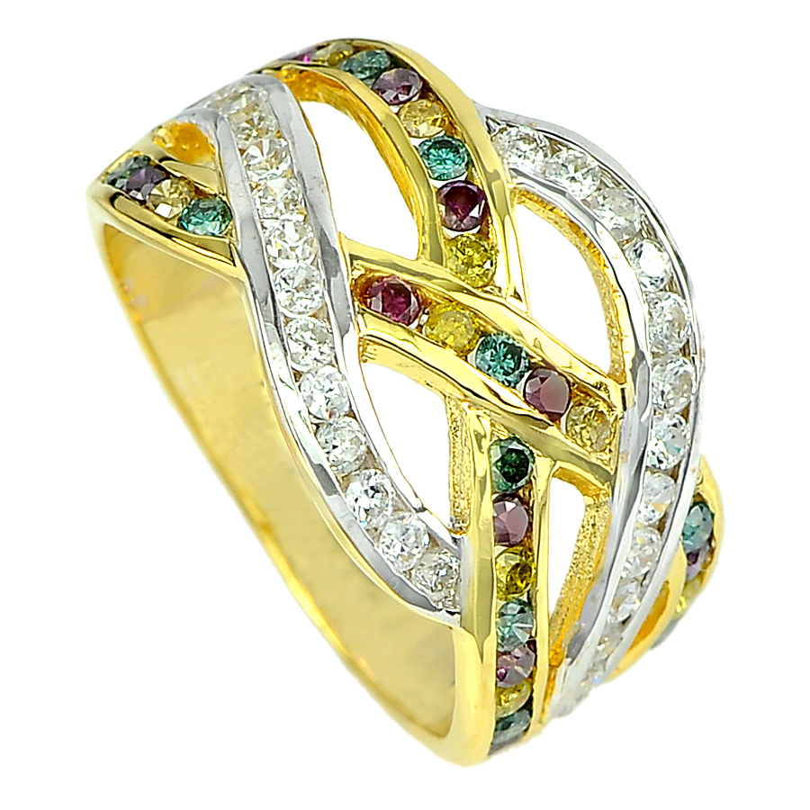 0.87 Ct. Natural White and Fancy Color Diamond 14K Solid Gold Ring Size 6.5