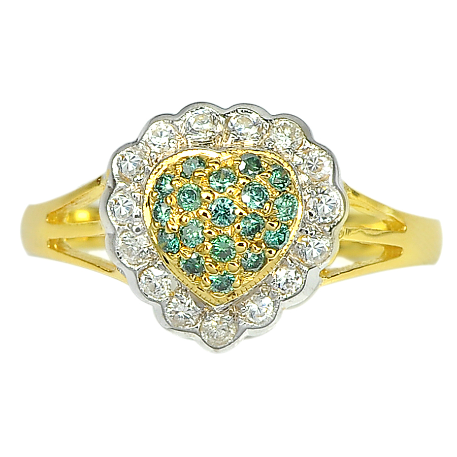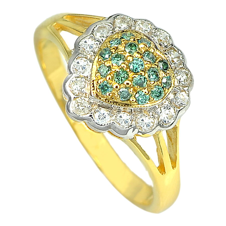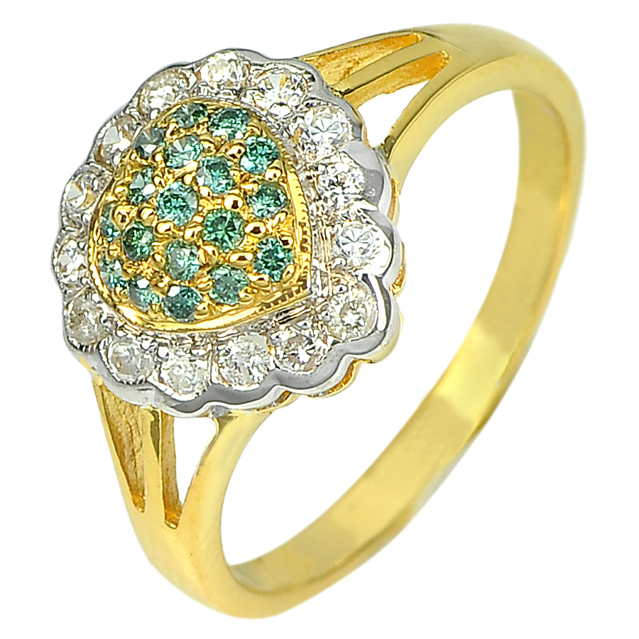 0.52 Ct. Natural Blue Green and White Diamond 14K Solid Gold Ring Jewelry