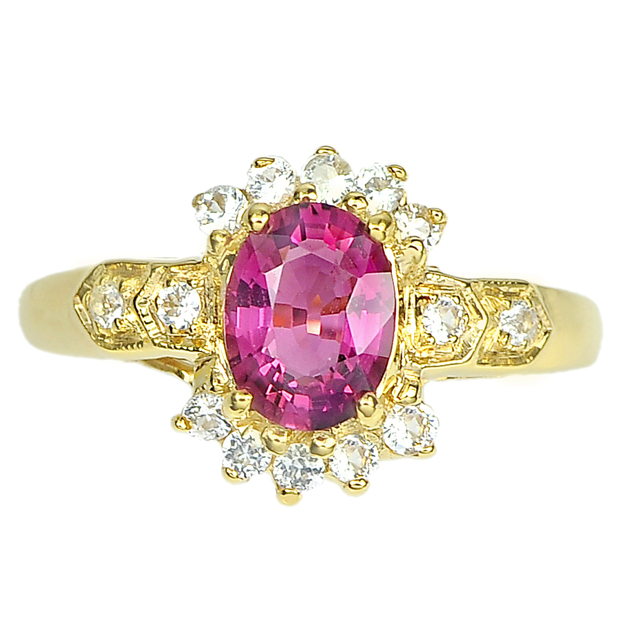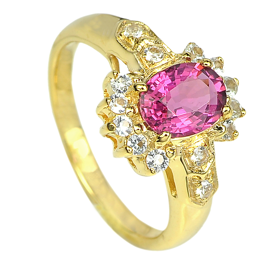 0.72 Ct. Natural Gemstone Pink Tourmaline and White Sapphire 14K Solid Gold Ring