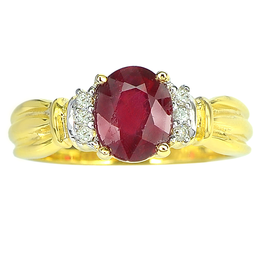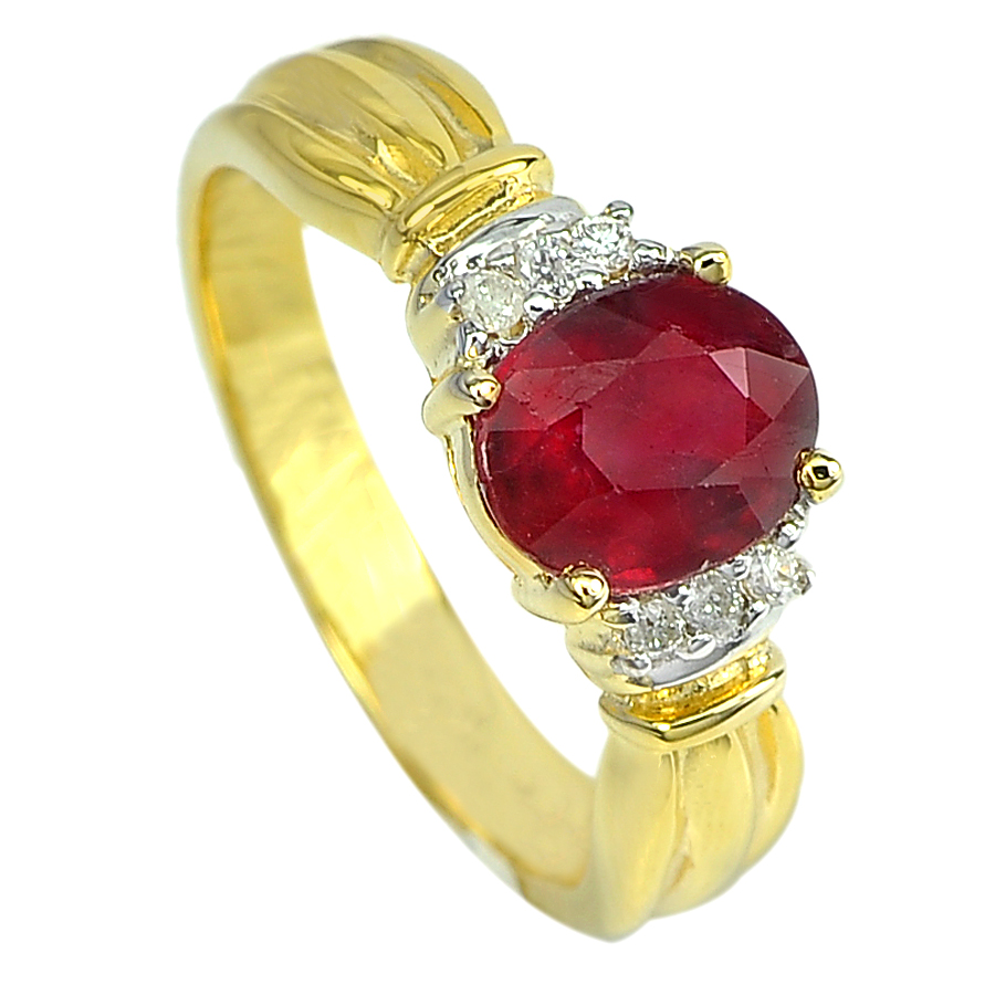 1.66 Ct. Natural Gemstone Red Ruby and Diamond 14K Solid Gold Ring