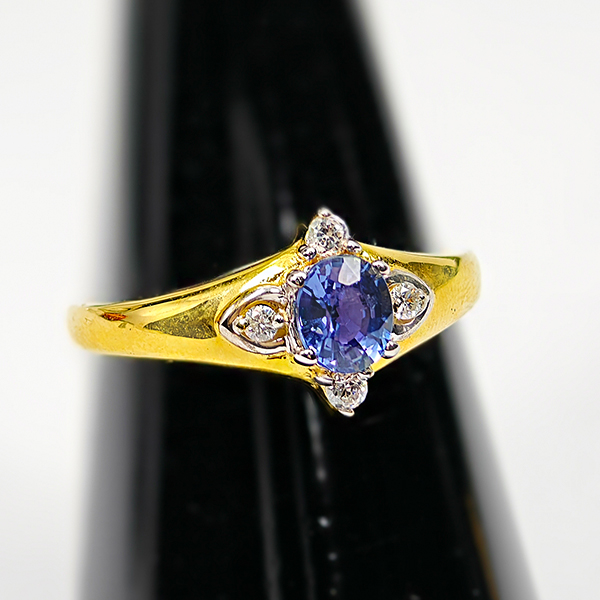 Clean Natural Gemstone Blue Tanzanite and Diamond 14K Solid Gold Ring