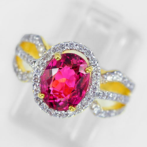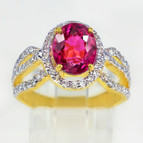 2.35 Ct. Natural Pink Tourmaline & Diamond 18K Solid Gold Ring