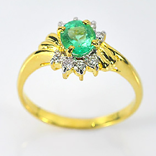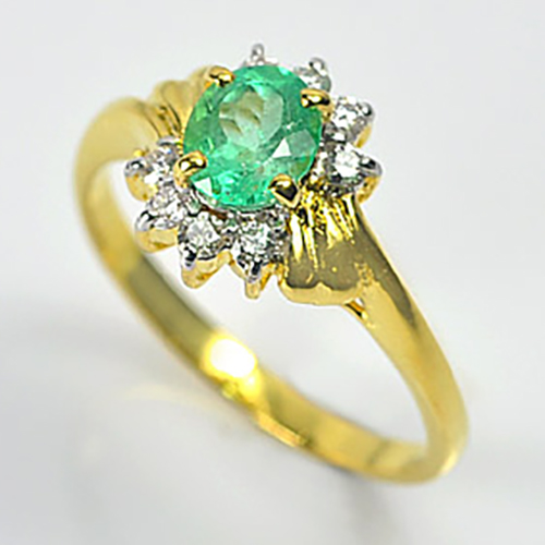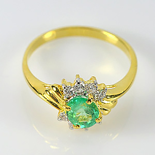 0.55 Ct. Natural Green Emerald & White Diamond 18K Solid Gold Ring