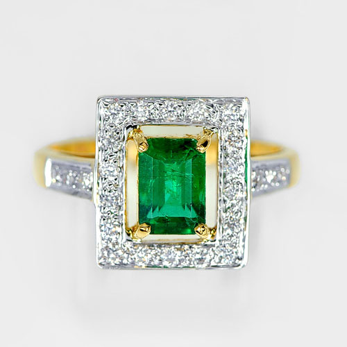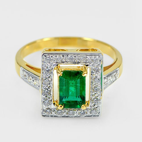 1.16 Ct. Natural Green Emerald & Diamond 18K Solid Gold Ring Sz 7