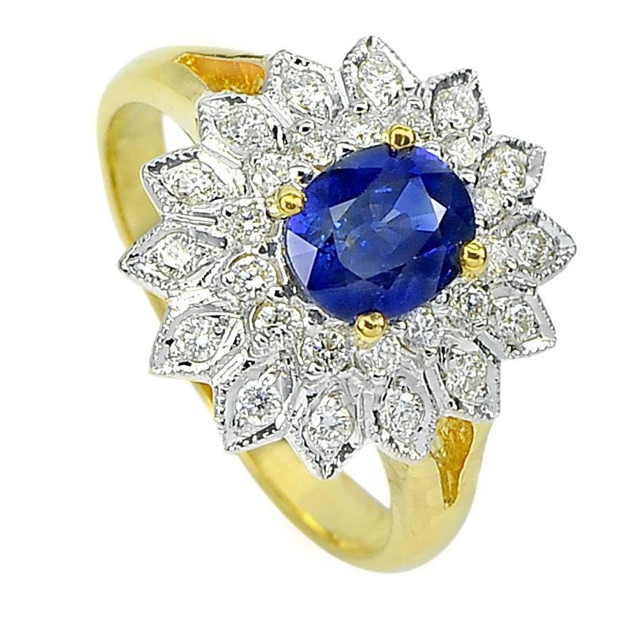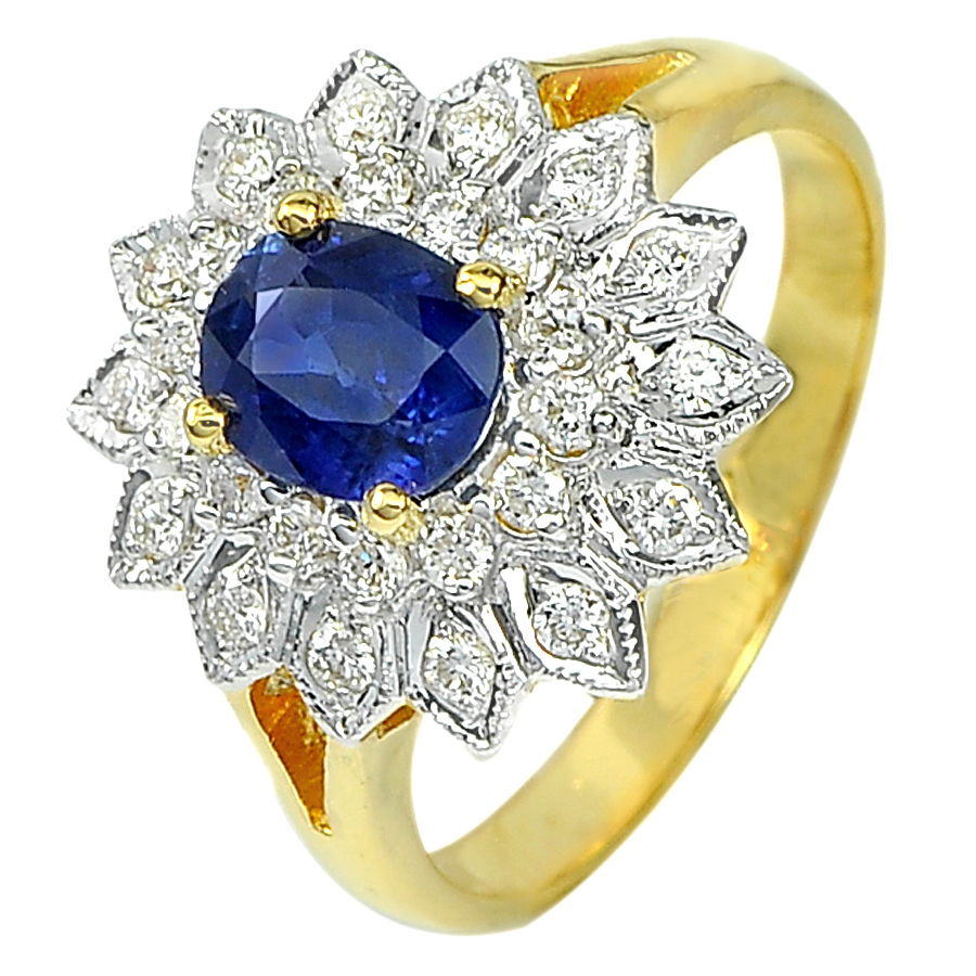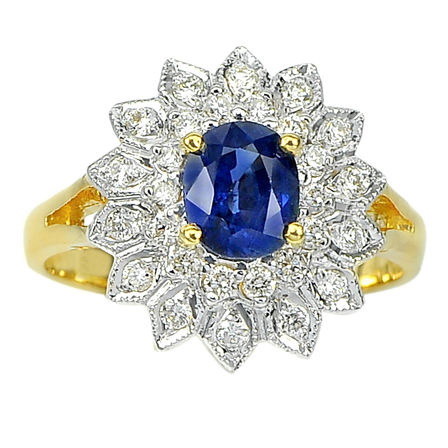 1.17 Ct. Natural Blue Sapphire with White Diamond 18K Solid Gold Ring Size 6.5