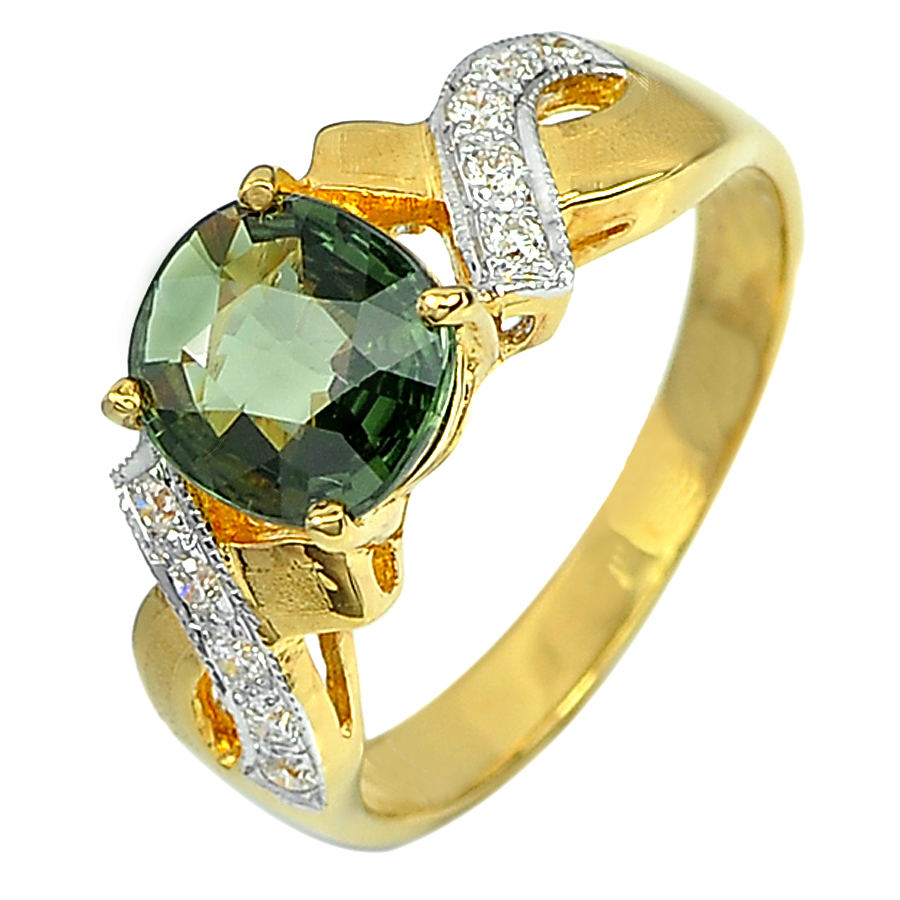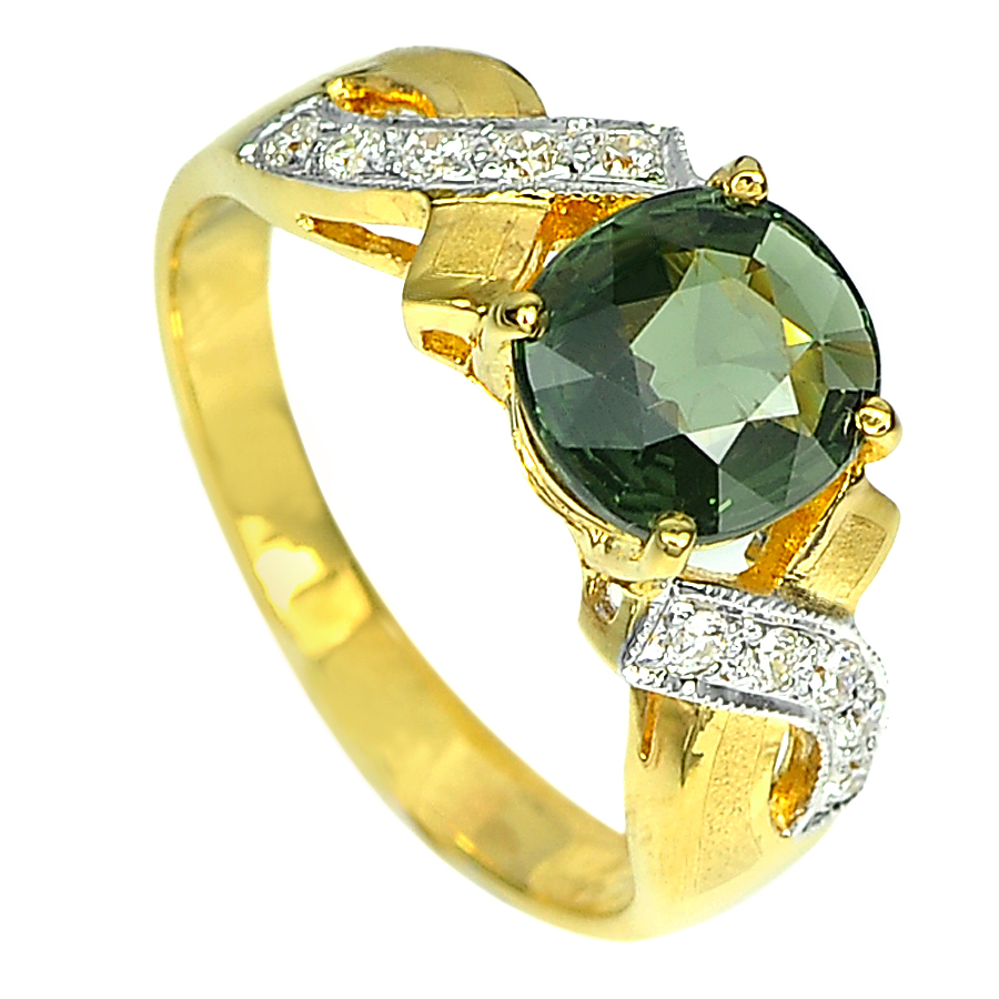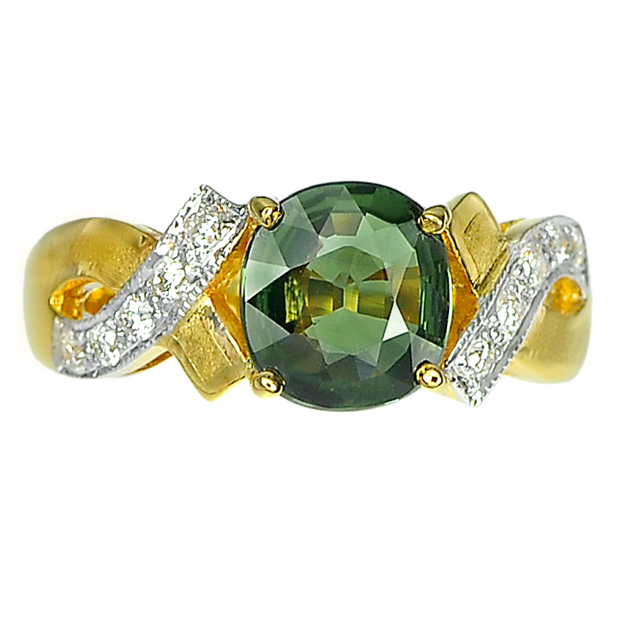 1.50 Ct. Natural Green Sapphire with White Diamond 18K Solid Gold Ring Size 6