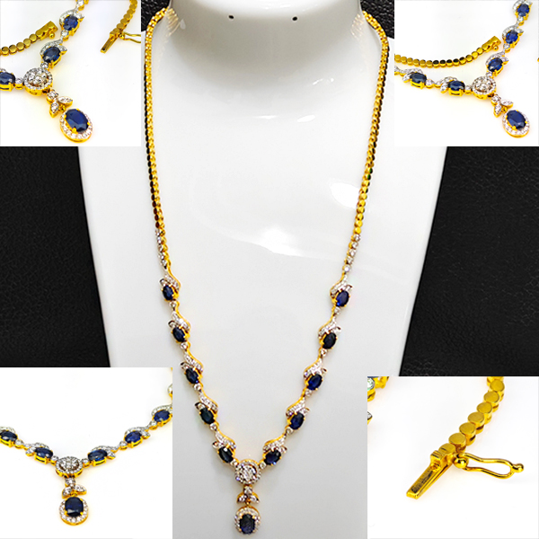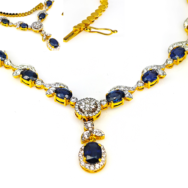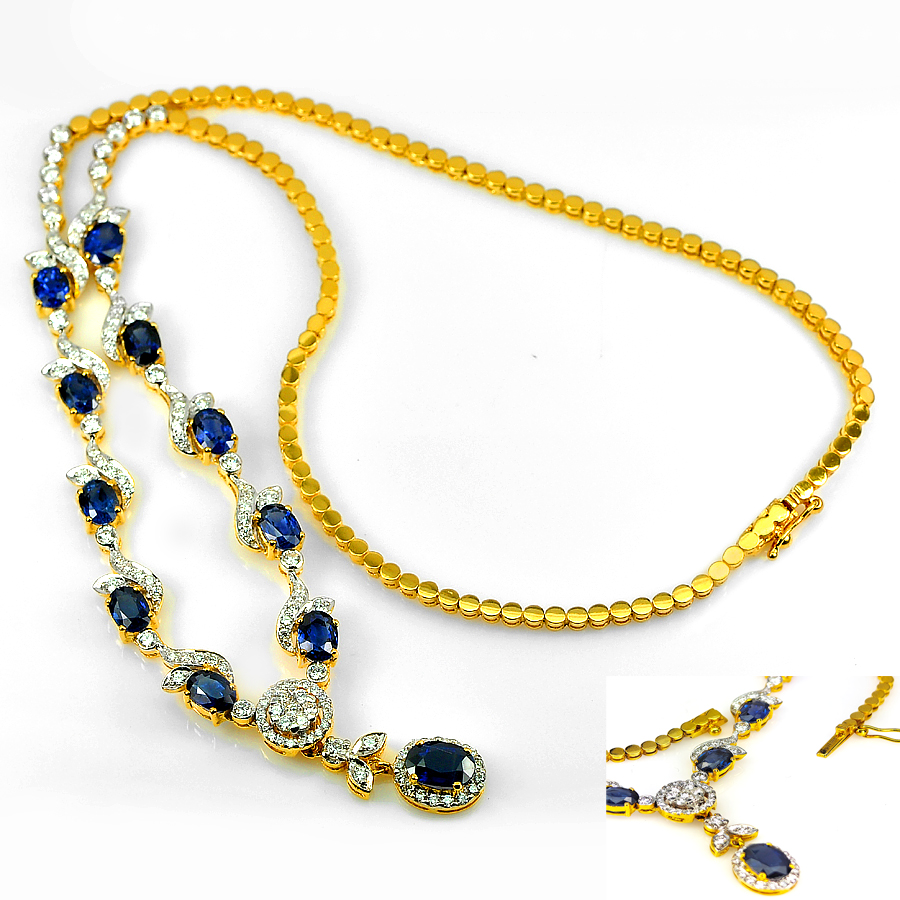 7.83 Ct. Natural Blue Sapphire and Diamond 18k Gold Jewelry Necklace 16 Inch.