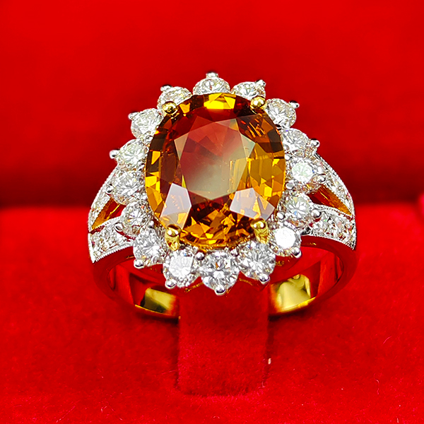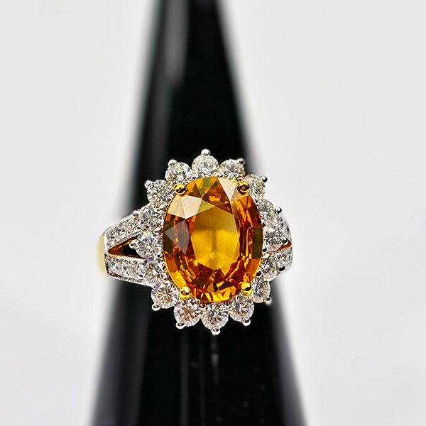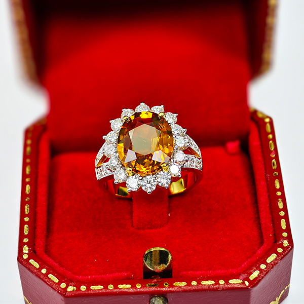 4.86 Ct. Natural Yellow Sapphire with White Diamond 18K Solid Gold Ring Size 7