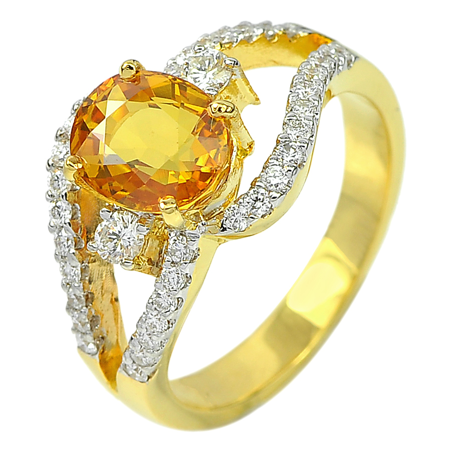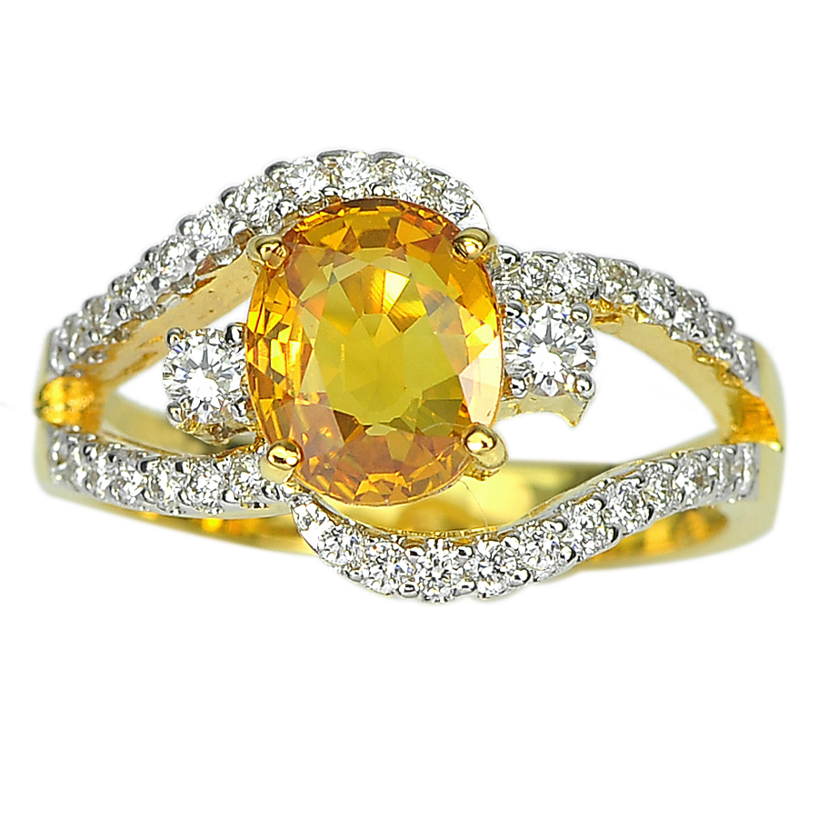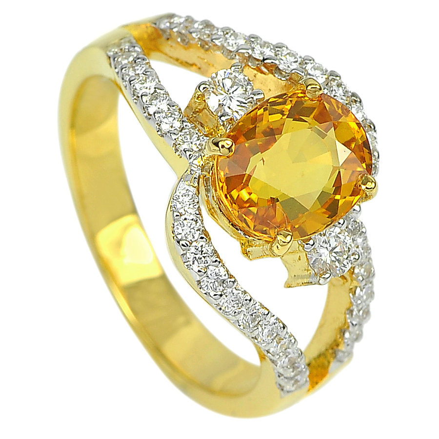 2.18 Ct. Natural Yellow Sapphire with White Diamond 18K Solid Gold Ring Size 6.5