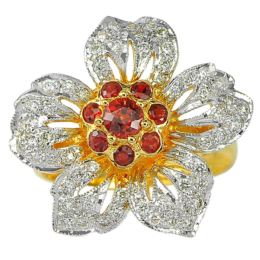 0.55 Ct. Natural Red Songea Sapphire and Diamond 18K Solid Gold Ring Size 6.5
