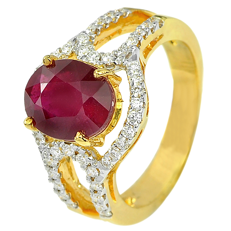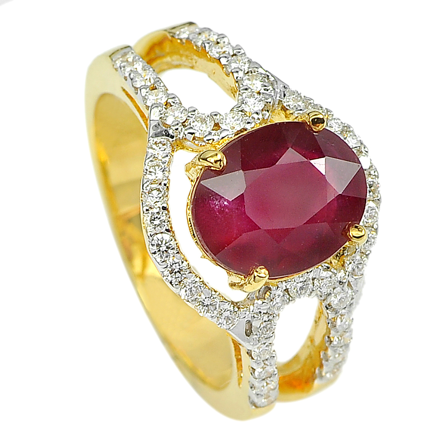 3.49 Ct. Oval Natural Red Ruby and White Diamond 18K Solid Gold Ring Size 6.5