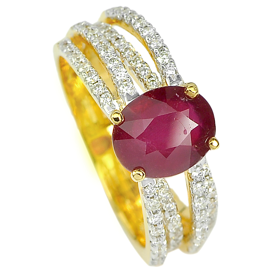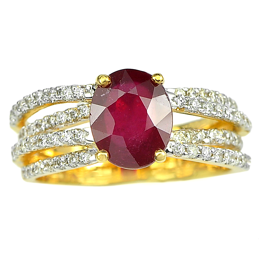 2.86 Ct. Oval Natural Red Ruby and White Diamond 18K Solid Gold Ring Size 6