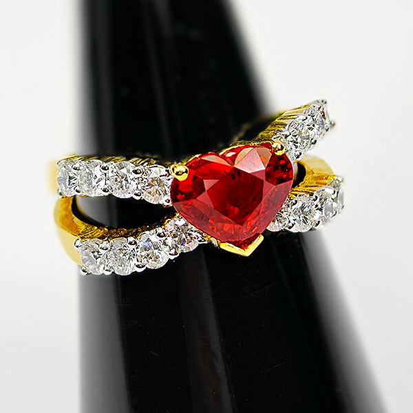 2.03 Ct. Natural Red Songea Sapphire and Diamond 18K Solid Gold Ring Size 6