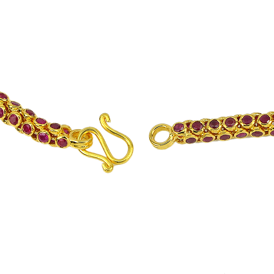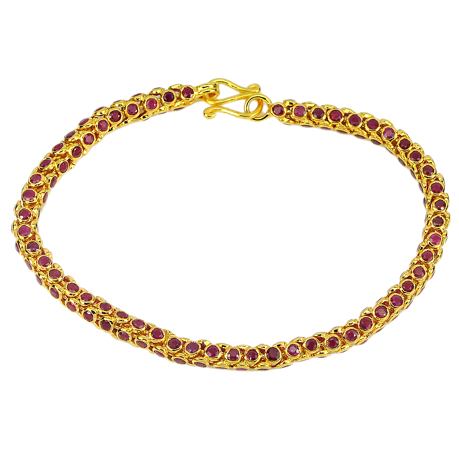 11.08 Ct. Natural Purplish Pink Mogkok Ruby 18K Solid Gold Bracelet 6.5 Inch.
